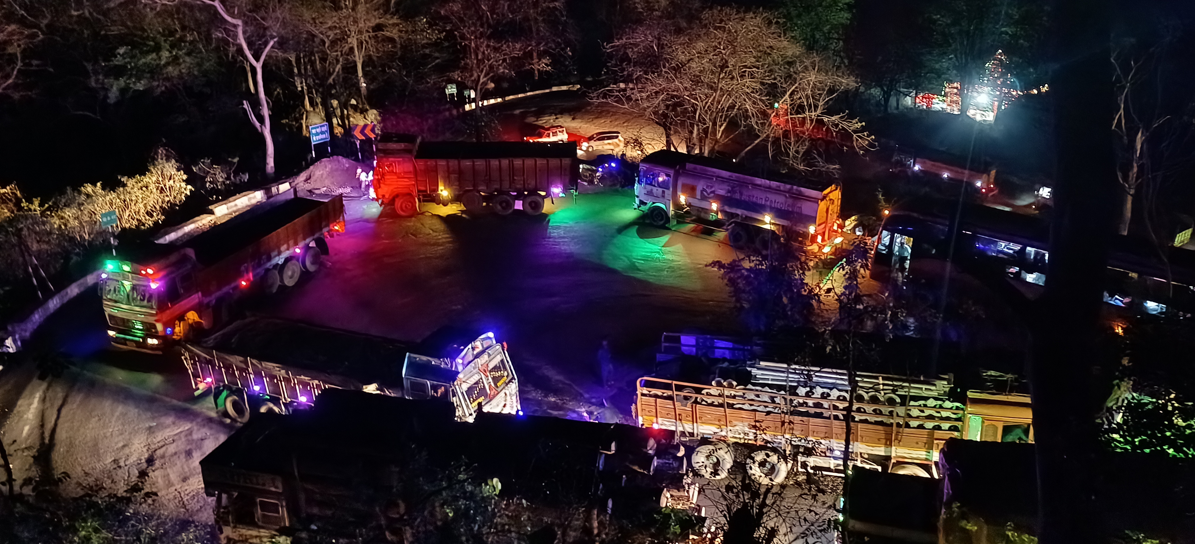 चूंकि घाट में रात की तुलना में दिन में वाहनों का आवागमन कम रहता है। ऐसे में शाम तक धीरे धीरे वाहनों का आवागमन जारी था। लेकिन रात में मालवाहक वाहनों की संख्या बढ़ते ही  घाट में जाम लगना शुरू हो गया। शाम लगभग 6.30 बजे घाट में सघन जाम लग गया था, जो कि समाचार लिखे जाने तक जारी रहा।