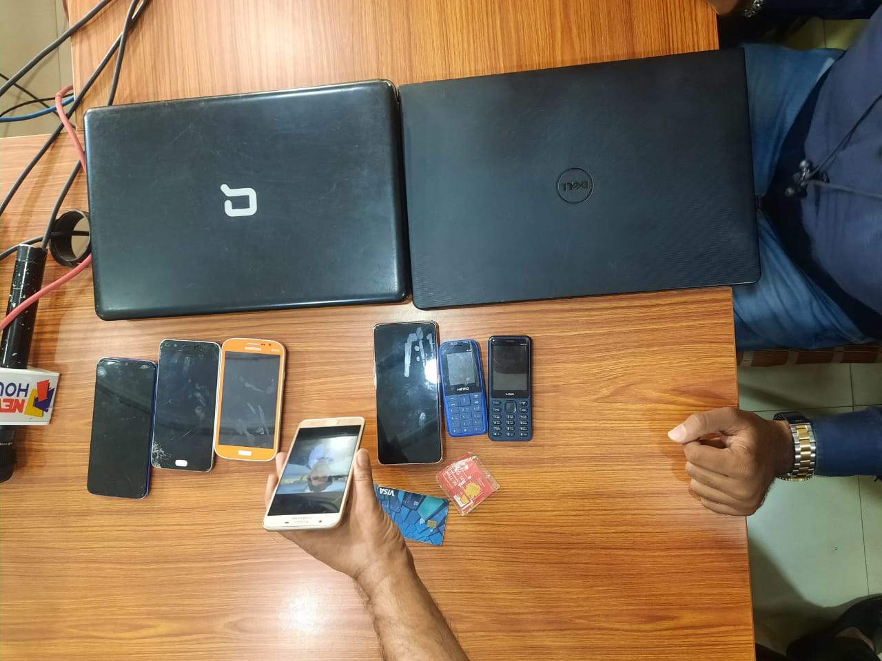 उसके पास से ठगी में इस्तेमाल 6 मोबाईल फोन, 2-2 पासपोर्ट, लैपटॉप एवं एटीएम कार्ड जप्त किया गया है और थाना सिविल लाईन में धारा 420, 34 भादवि., 66डी आई.टी. एक्ट के तहत् किया गया है।