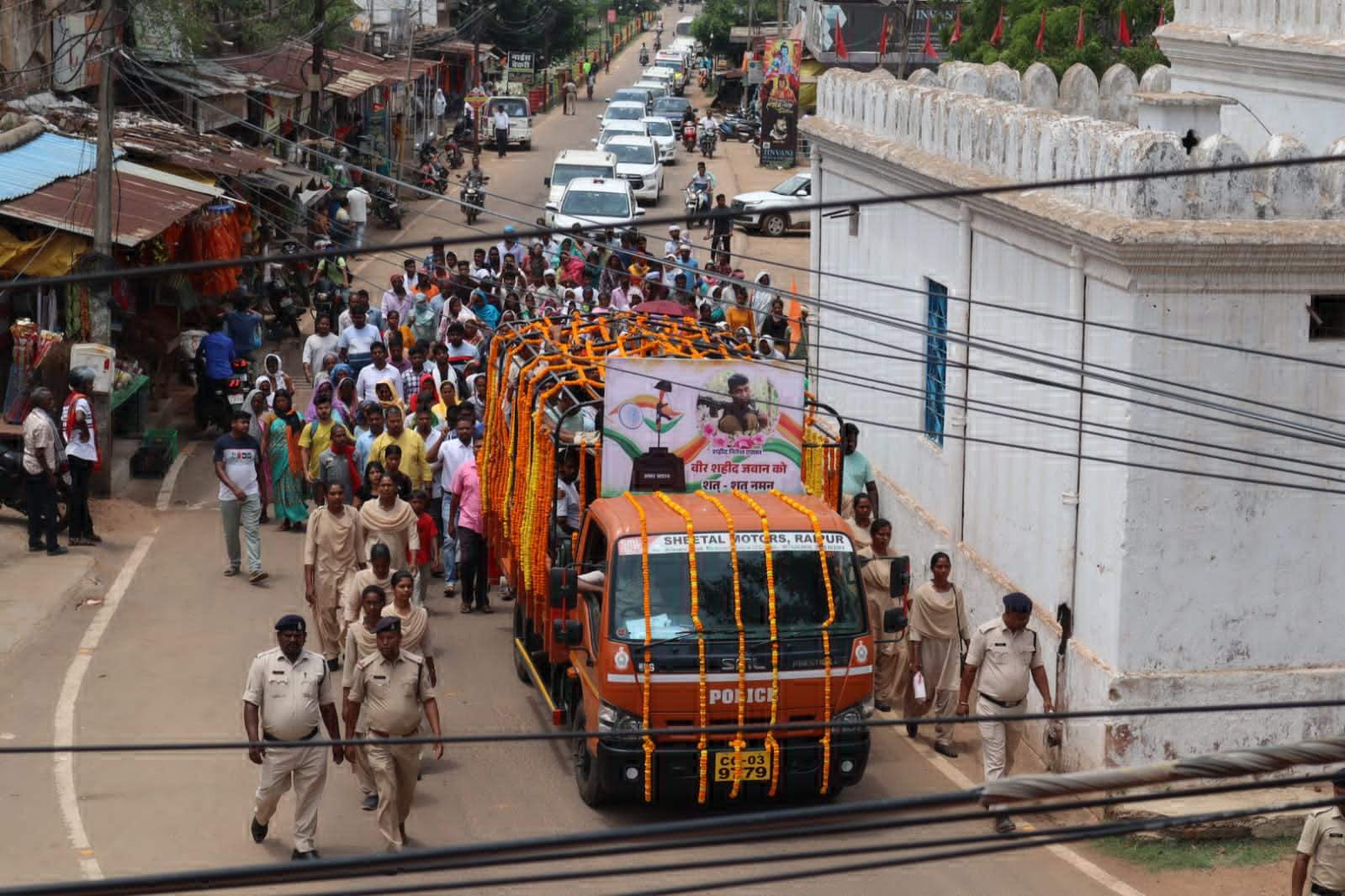 रायपुर से जैसे ही शहीद के पार्थिव शरीर को सेना के विशेष विमान से जशपुर पुलिस लाइन हैलीपेड पहुंचा तो शहीद के परिजनों और ग्रामीणों सहित नगर के जनसमूह वीर जवान को श्रद्धांजलि देने उमड़ पड़ा।