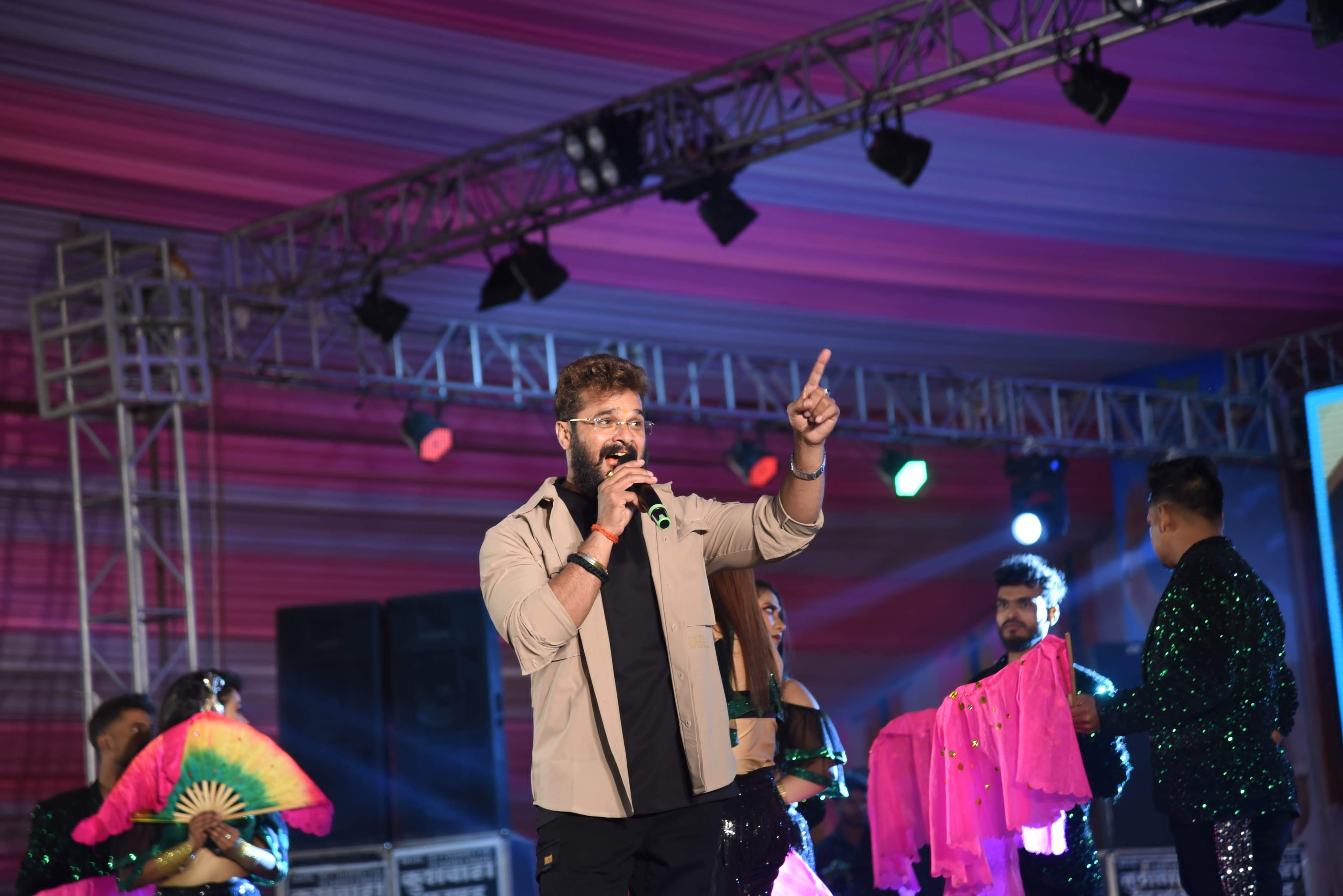 मशहूर भोजपुरी कलाकार खेसारी लाल के भोजपुरी गीतों पर दर्शक जमकर झूमे, खेसारी लाल के स्टेज पर पहुंचते साथ लोगों ने जमकर तालियां बजाकर उनका स्वागत किया।