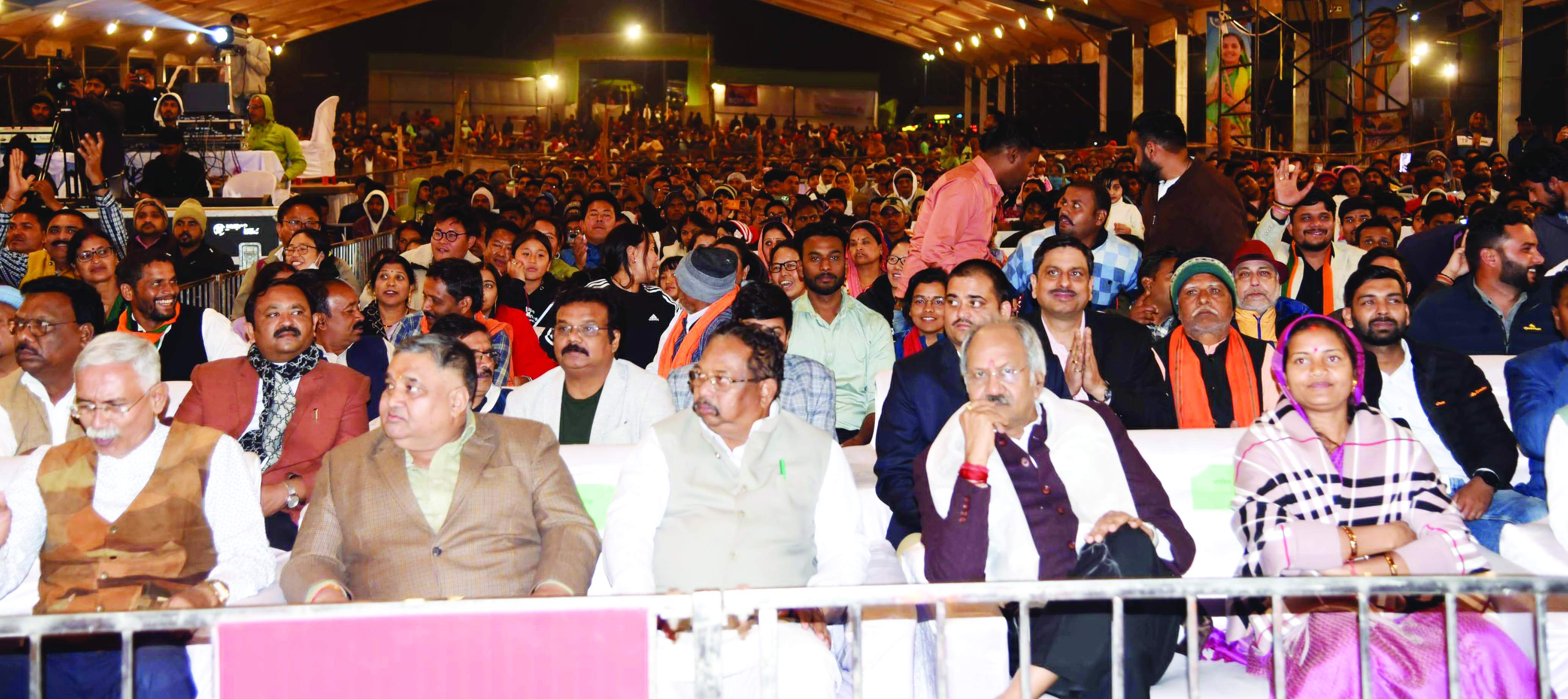 अंबिकापुर, 26 फरवरी। मैनपाट महोत्सव 2024 का समापन समारोह स्कूल शिक्षा, उच्च शिक्षा, संसदीय कार्य धार्मिक न्यास एवं धर्मस्व, पर्यटन एवं संस्कृति मंत्री बृजमोहन अग्रवाल की उपस्थिति में हुआ। मंत्री श्री अग्रवाल ने महोत्सव स्थल पहुंचकर शासकीय विभागों द्वारा लगाए गए स्टालों का अवलोकन किया। समापन समारोह के अवसर पर मंच पर प्रस्तुति दे रहे प्रसिद्ध कलाकार राजेश मिश्रा के गीत पंखिड़ा ओ पंखिड़ा भक्ति गीत पर मंत्री श्री अग्रवाल सहित कैबिनेट मंत्री लक्ष्मी रजवाड़े और जनप्रतिनिधि झूम उठे।