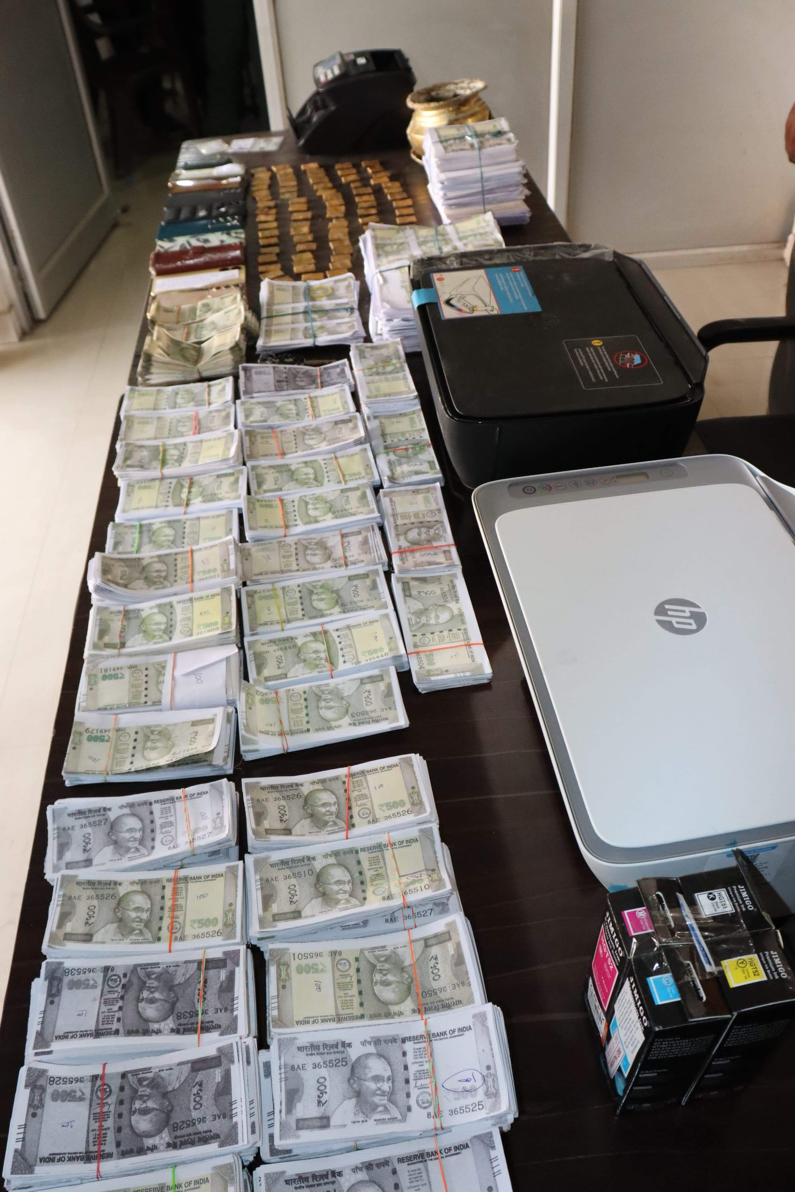 पुलिस ने इन आरोपियों के पास नकली नोट का बहुत बड़ा जखीरा पकड़ा है। आरोपियों के कब्जे से 500 का दोनों तरफ प्रिंट नोट 2100 नग कुल 10 लाख 50 हजार रुपये मूल्य का जाली नोट, 500 का एक तरफ प्रिंट जाली नोट 2500 नग कुल 12 लाख 50 हजार रुपये मूल्य का जाली नोट बरामद किया गया है।