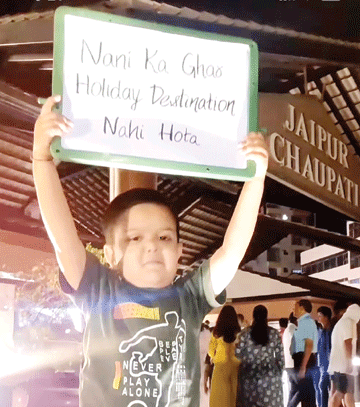 इस बच्चे को नानी के घर जाने से परहेज है। तख्ती लगाकर विरोध कर रहा है कि वह छुट्टियां बिताने की जगह नहीं है। वैसे ज्यादातर बच्चे तो गर्मियों में नानी के घर जाने का बेसब्री से इंतजार करते रहते हैं। कोई बात नहीं, अब तख्तियां नीचे रख देनी चाहिए। छुट्टियां खत्म हो चुकी हैं, स्कूल खुल चुके हैं। अगली गर्मी में देखेंगे कहां जाना है..।