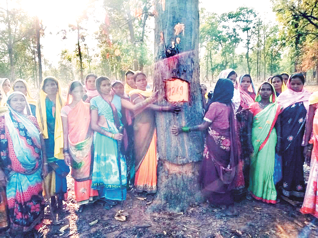 कोल ब्लॉक के लिए हसदेव अरण्य पर आश्रित आदिवासियों का विरोध व्यर्थ गया और नेताओं का आश्वासन झूठा निकला। यह तस्वीर उन लाखों में से एक पेड़ के साथ चिपकी महिलाओं की है जो इस मिट्टी के गर्भ में दबे कोयले को निकालने के लिए काट दी जाने वाली है। पृथ्वी दिवस पर यह महिलाएं पेड़ों से रोते हुए क्षमा मांग रही है कि तुमने हमें पाला पोसा और हम तुम्हें नहीं बचा पा रहे हैं।