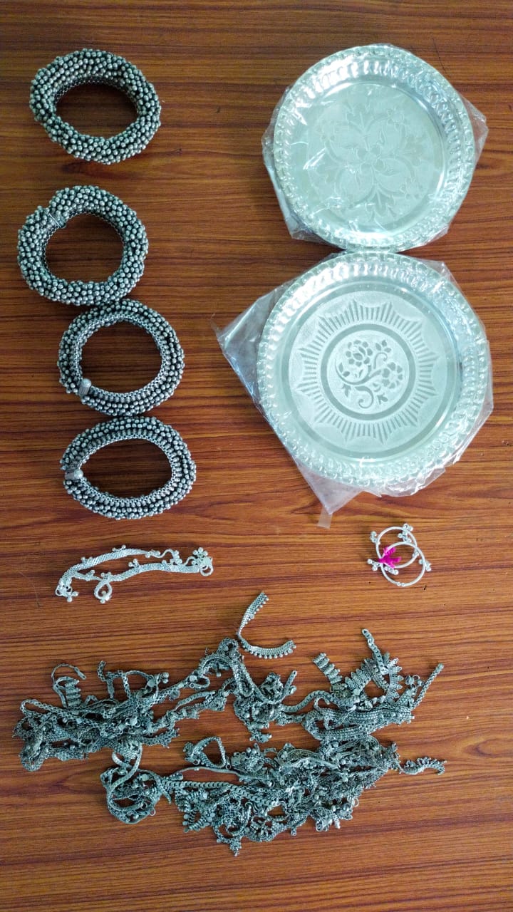 दरअसल बालोद नगर के हलधर चौंक स्थित गंगा मैया ज्वेलर्स में 15 मई को दोपहर लगभग 11.30 बजे प्रार्थी में 4 आदमी और 2 औरत आये जिनमे से एक औरत अपने साथ 3-4 साल का बच्चा रखी थी। उनमें से एक आदमी अपना नाम रामजी पिता छोटलाल निवासी हीरापुर का रहने वाला बताकर अपनी दो बहन को गिफ्ट देने के लिए चांदी का सामान दिखाने की बात कहने लगा। जिसके बाद 25 हजार 775 रुपये की चांदी की दो थाली को 30 हजार 135 रुपये के पायजेब बदले में दिया और बचत रकम 4360 रू नगद दिया। जब ज्वेलरी संचालन ने पायजेब की जांच की तो वह नकली निकली। जिसके बाद बालोद थाने में पहुंचकर मामले में रिपोर्ट दर्ज कराई।