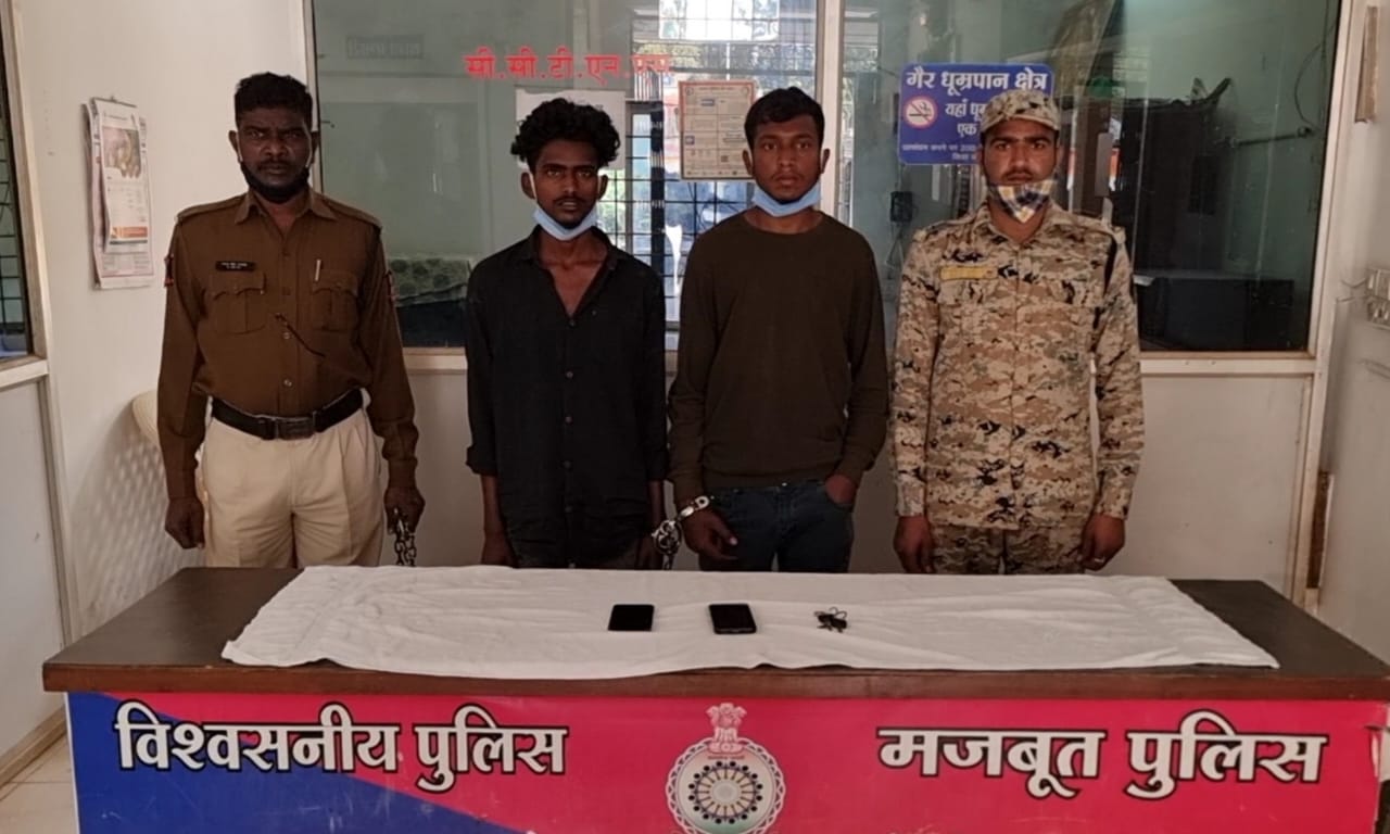 एक दिन पूर्व 2 चोरों के द्वारा रात्रि में बालाजी वार्ड में मोटर सायकिलों की चोरी किया जा रहा था। रात्रि गश्त फिक्स पाइंट ड्यूटी पर तैनात प्रधान आरक्षक अश्वनी धु्रव, आरक्षक भूपेन्द्र नेताम एवं हरिश कोर्राम की ड्यूटी संजय बाजार क्षेत्र में लगायी गई थी। चोरी का संदेह होने पर बालाजी वार्ड की घेराबंदी कर 2 संदिग्ध चोरों को मोटर सायकल चोरी करते रंगे हाथ पकड़ा गया।