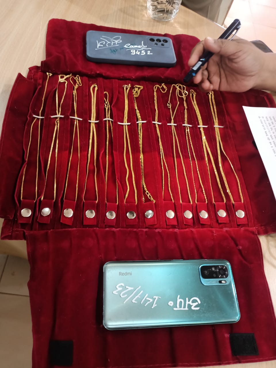 1. 12 नग सोने की चैन कीमती 5,00000/- रूपये ।