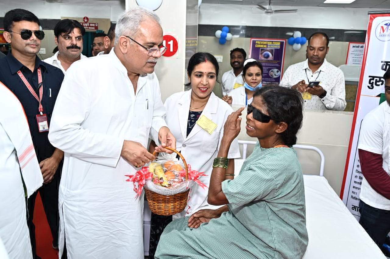 जगदलपुर जिला चिकित्सालय में नेत्र रोग विंग के शुभारंभ के बाद मुख्यमंत्री भूपेश बघेल यहां की आईपीडी में उपचाररत मरीजों से मिले और उनसे बातचीत कर उनके स्वास्थ्य व आंख की रोशनी के बारे में जानकारी ली। उन्होंने मरीजों को फल भी भेंट किए।