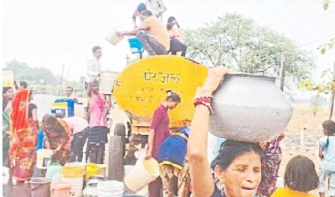 बारिश में भी प्यासे वार्डवासी, टैंकर से पानी भरने टूट पड़ते हैं