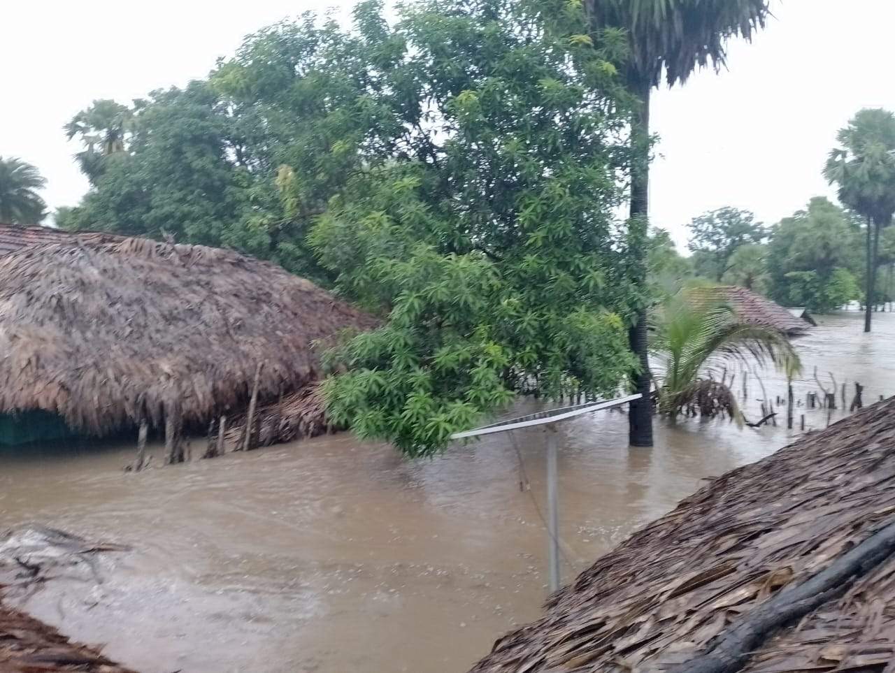 जिले के उसूर ब्लॉक के अंतिम छोर पर बसे पामेड़ से लगे धर्मारम गांव के सरपंचपारा में 30 से 40 घर बाढ़ के पानी में डूब गए हैं। अब इन घरों के ग्रामीण बचे खुचे सामानों को लेकर पास के पटेलपारा में शरण लिए हुए हैं। गांव के चारों ओर पानी भरा होने से मार्ग अवरुद्ध है। इसके चलते ग्रामीणों तक राहत नहीं पहुंच पा रहा है।