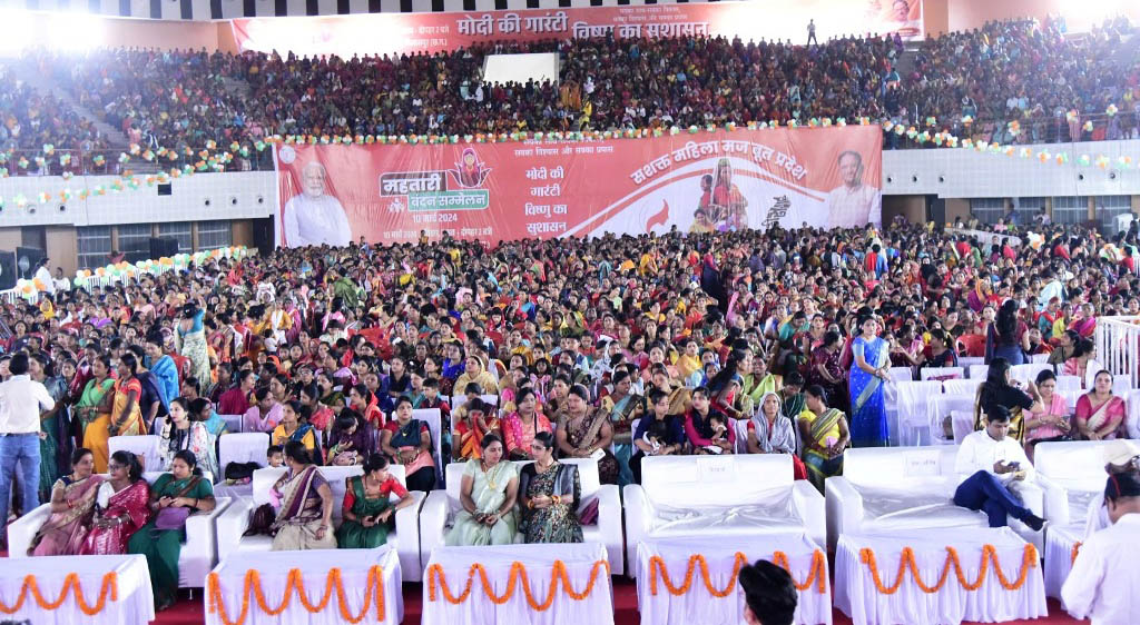 स्टेडियम में महिलाओं ने प्रधानमंत्री नरेंद्र मोदी को सुना। कार्यक्रम को वर्चुअली संबोधित करते हुए प्रधानमंत्री मोदी ने कहा कि महतारी वंदन योजना के तहत छत्तीसगढ़ की 70 लाख से अधिक माताओं बहनों को हर महीने एक हजार रुपए देने का वायदा सरकार ने पूरा किया।
