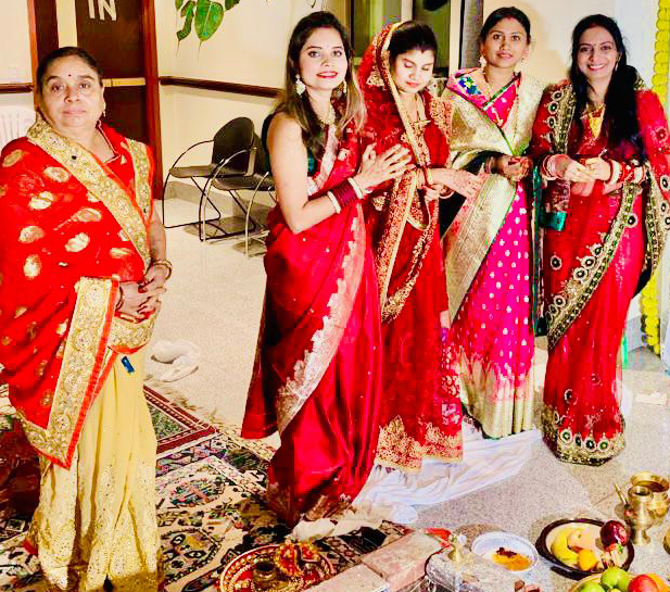साथ ही शिकागो में भी महिलाएं पूजा अर्चना कर मंगल गीत गाये। इस अवसर पर महिलाओं ने तरह-तरह की डिजाइन की मेहंदी लगाई। साथ ही नए कपड़े व आभूषण से सज-संवर कर पूजन किया और व्रत की पौराणिक कथा सुनी।