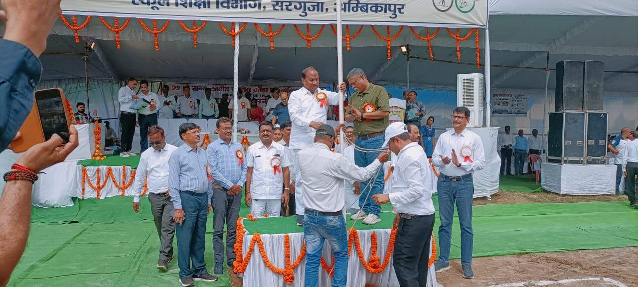 अम्बिकापुर,11 अक्टूबर। 22वीं राज्य स्तरीय शालेय क्रीड़ा प्रतियोगिता का रंगारंग शुभारंभ मंगलवार को स्थानीय शासकीय बहुउद्देशीय उच्चतर माध्यमिक विद्यालय अम्बिकापुर के प्रागंण में हुआ। कार्यक्रम के मुख्य अतिथि सीजीएमएससी के अध्यक्ष व लुण्ड्रा विधायक प्रीतम राम, बीस सूत्रीय कार्यक्रम कार्यान्वयन समिति के उपाध्यक्ष अजय अग्रवाल,महापौर डॉ. अजय तिर्की,जिला पंचायत सदस्य राकेश गुप्ता, सहकारिता प्रकोष्ठ के प्रदेश अध्यक्ष अजय बंसल, जिला कांग्रेस कमेटी के महामंत्री राजीव अग्रवाल, सहित अन्य अतिथियों के द्वारा द्वीप प्रज्ज्वलित कर समारोह का शुभारंभ किया गया एवं ध्वजारोहण किया गया।