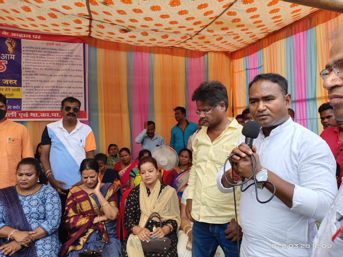 किंरदुल एमएमडब्ल्यूयू के पदाधिकारियो ने बताया कि मेटल माईन्स वर्कर्स यूनियन इंटक शाखा किरंदुल द्वारा राष्ट्व्यापी हड़ताल का पूर्ण समर्थन देते हुए 13 सूत्रीय मंागो को लेकर हड़ताल किया जा रहा है। इन मांगों में एनएमडीसी आयरन एंड स्टील प्लांट, नगरनार और अन्य सार्वजनिक उपक्रमों के रणनीतिक विनिवेश के निर्णय को तत्काल वापस लेना। श्रम संहिताओं को समाप्त करना, ईडीएसए को समाप्त करना।संयुक्त किसान मोर्चा के कृषि कानूनों को निरस्त करने के बाद, मांगों के 6 सूत्री चार्टर को स्वीकार करने।किसी भी रूप में निजीकरण बंद करो और एनएमपी को खत्म करो। गैर-आयकर भुगतान करने वाले परिवारों को प्रति माह 7500 रुपये की खाद्य और आय सहायता। मनरेगा के लिए आवंटन में वृद्धि और शहरी क्षेत्रों में रोजगार गारंटी योजना का विस्तार। इसके अलावाराष्ट्रीय अर्थव्यवस्था को पुनर्जीवित करने के लिए धन कर आदि के माध्यम से अमीरों पर कर लगाकर कृषि, शिक्षा, स्वास्थ्य और अन्य महत्वपूर्ण सार्वजनिक उपयोगिताओं में सार्वजनिक निवेश में वृद्धि। पेट्रोलियम उत्पाद पर केंद्रीय उत्पाद शुल्क में पर्याप्त कमी और मूल्य वृद्धि को रोकने के लिए ठोस उपाय। ठेका श्रमिकों, योजना श्रमिकों का नियमितीकरण और सभी के लिए समान काम के लिए समान वेतन। एनपीएस को रद्द करना और पुरानी पेंशन की बहाली, कर्मचारी पेंशन योजना के तहत न्यूनतम पेंशन में पर्याप्त वृद्धि आदि हैं।