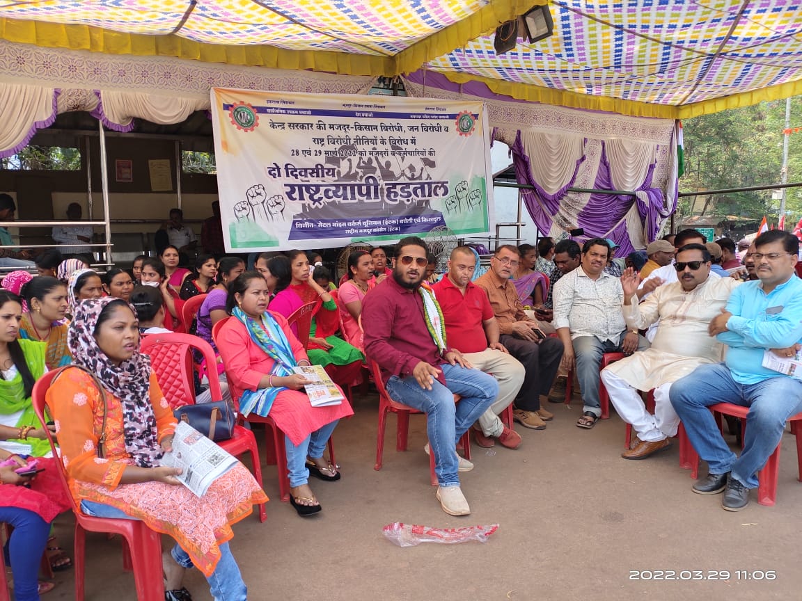 ट्रेड यूनियनों के आह्वान पर केन्द्र सरकार के जन, किसान व मजदूर विरोधी नीतियों के खिलाफ हो रहे दो दिवसीय हड़ताल के दूसरे दिन मंगलवार को भी मजदूर संगठनों ने  विरोध दर्ज कराया। दोनों परियोजना बचेली व किरंदुल में दूसरे दिन भी लौह अयस्क का उत्पादन ठप रहा।