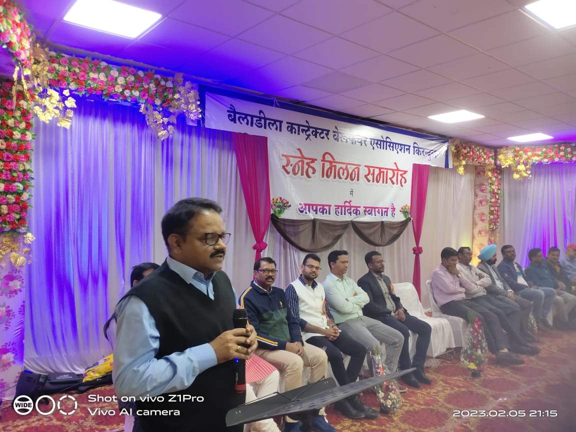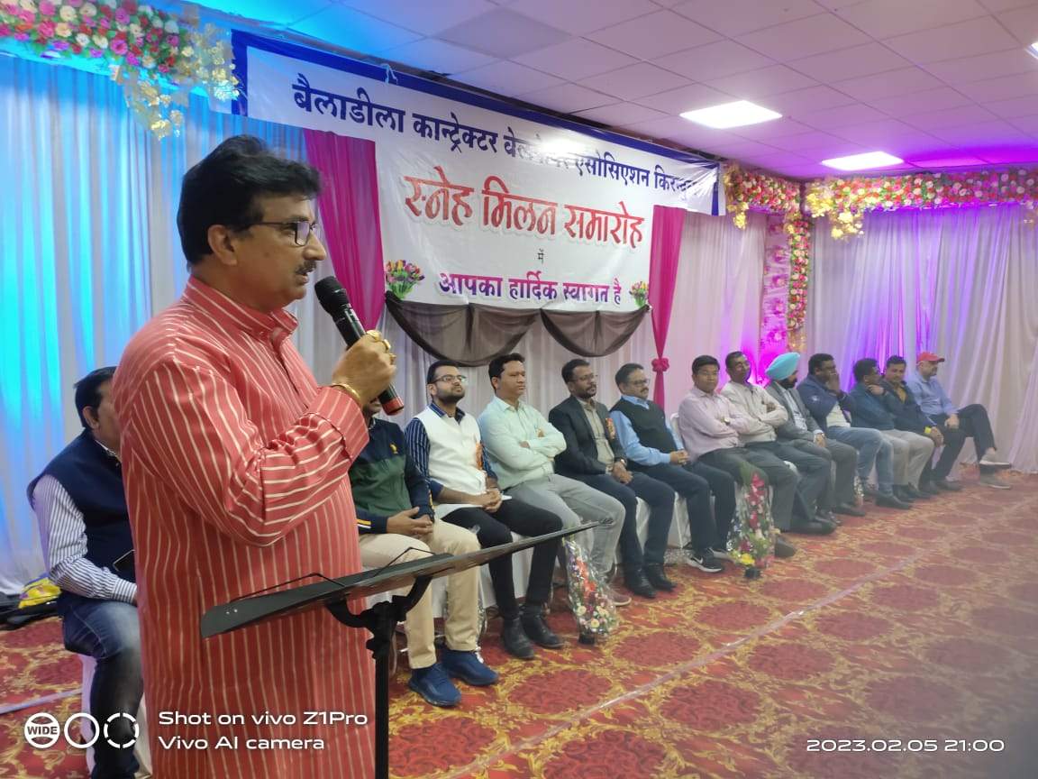 बैलाडीला कांट्रेक्टर वेलफेयर एसोसिएशन के चुनाव में निर्वाचित पदाधिकारियों द्वारा प्रथम बार भव्य स्नेह मिलन समारोह का आयोजन किया गया था सभी अतिथियों ने इस कार्यक्रम की भरपूर सराहना की।