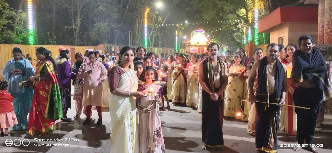 मण्डलव्रत पूजा के अंतिम दिन रेल्वे कॉलोनी के शिव मंदिर में पूजा पश्चात श्रद्वालुओ द्वारा हाथो में दीया लेकर शहनाई बजाते हुए रेल्वे कॉलोनी के शिव मंदिर से भगवान अयप्पा की झांकी निकाली गई। शहनाई दल केरल राज्य से आया था। रथ को काफी आकर्षक ढंग से सजाया गया था। इस दौरान जमकर गाजे-बाजे व आतिशबाजी की गई। अंत मेंं झांकी अयप्पा मंदिर पहुॅची।