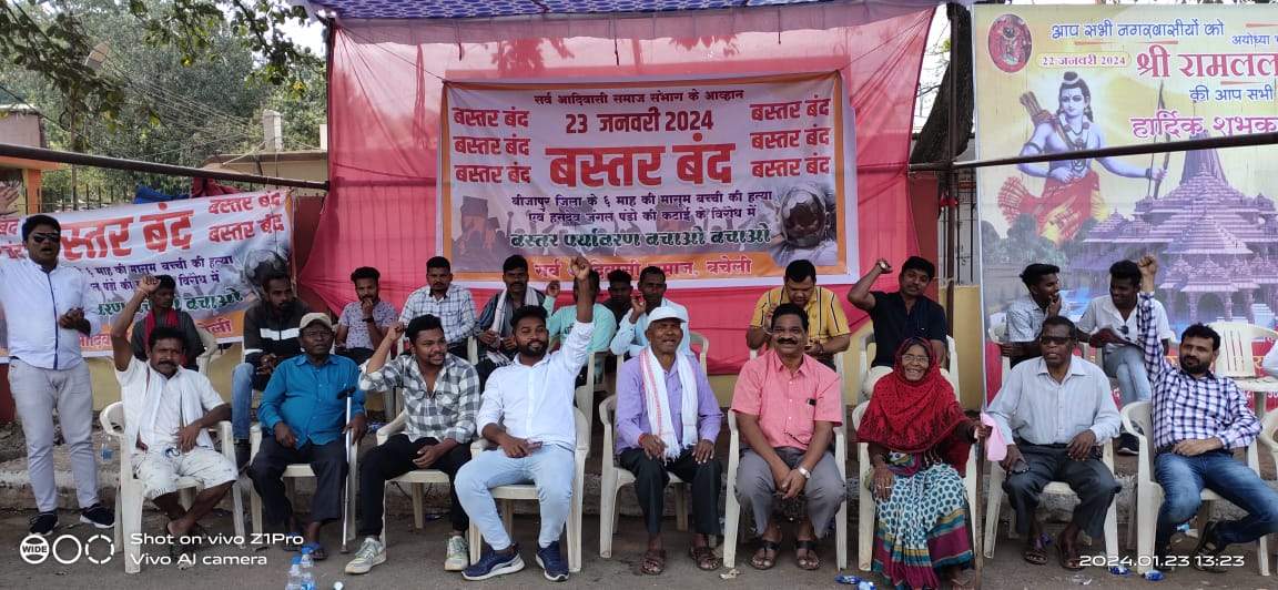 दरअसल, बीजापुर के ग्राम मुवेंडी की 6 माह की मासूम की गोली लगने से मौत और हसदेव के जंगल की कटाई के विरोध में सर्व आदिवासी समाज ने बस्तर बंद का ऐलान किया था। साथ ही इस बंद को सफल बनाने आदिवासी समाज ने व्यापरियों से सहयोग मांगा था।