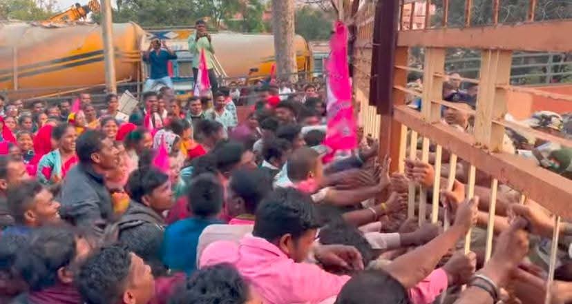 इस दौरान ज्ञापन सौंपने को लेकर कार्यकर्ताओं और सुरक्षा बलों के बीच धक्का-मुक्की की स्थिति बनी। जानकारी के अनुसार भीड़ को आगे बढऩे से रोकने के लिए सीआईएसएफ द्वारा लाठीचार्ज किया गया, जिसमें कुछ लोगों के घायल होने की सूचना है। घायलों में महिलाएं भी शामिल बताई गई हैं।