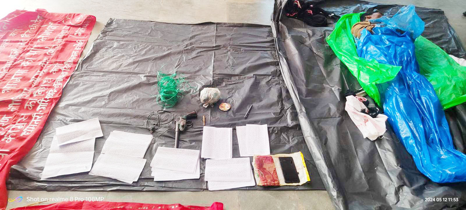 मुठभेड़ के बाद हथियार 312बोर देशी कट्टा, नक्सली साहित्य एवं नक्सली सामग्री सहित अन्य सामान बरामद किया गया।