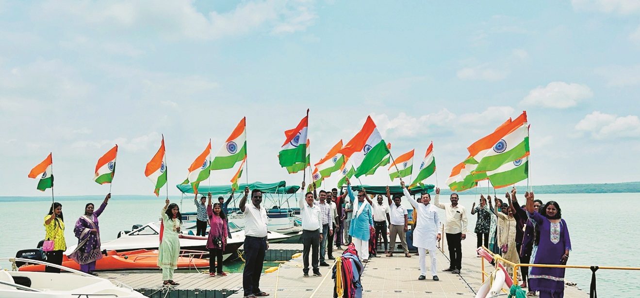 धमतरी, 12 अगस्त। भाजपा के हर-घर तिरंगा अभियान जो स्वतंत्रता दिवस के पूर्व चलाया जा रहा है इसके अंतर्गत पार्टी के प्रदेश विशेष आमंत्रित सदस्य प्रीतेश गांधी छत्तीसगढ़ के दूसरे सबसे बड़े बांध गंगरेल में पहुंचकर डैम के चारों तरफ तिरंगा लहराया। गांधी के साथ पूर्व सभापति राजेंद्र शर्मा, पार्षद पिन्टू यादव, कुलेश सोनी, समाजसेवी नरेंद्र जायसवाल भी शामिल रहे।