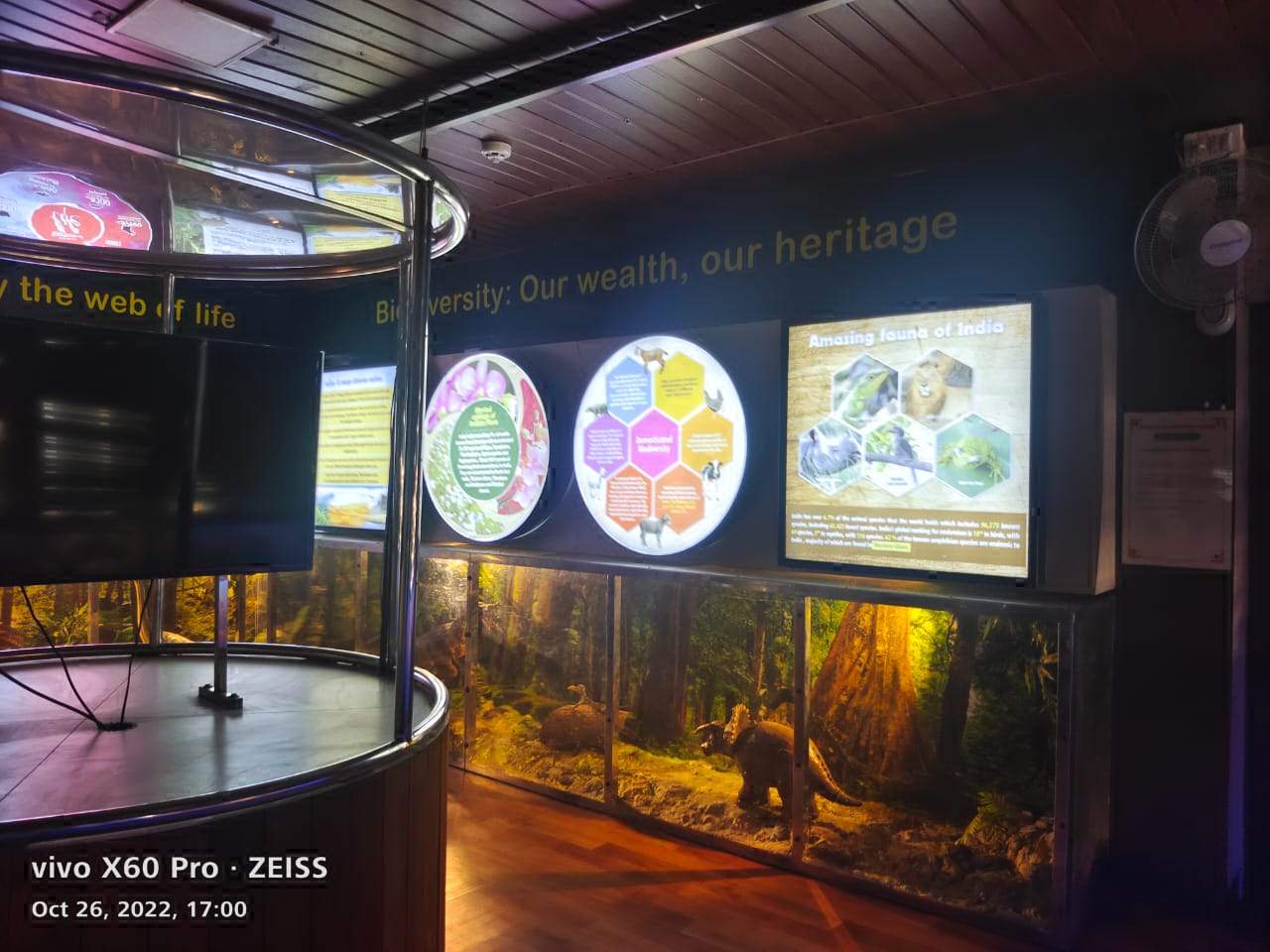 उन्होंने बताया कि यहाँ का प्रमुख आकर्षण जैव विविधता गैलरी है - जिसमें भारत और केरल दोनों की जैव विविधता की विविधता दिखाई गईं है। यहाँ की दीर्घाएँ प्रागैतिहासिक जानवरों पर प्रकाश डालती हैं जैसे डायनासोर, पारिस्थितिक रूप से महत्वपूर्ण प्रजातियाँ, संकटग्रस्त प्रजातियाँ आदि। प्रदर्शनी, डियोराम, स्केल डाउन मॉडल, इंटरैक्टिव कियोस्क, एलसीडी डिस्प्ले कुछ प्रमुख आकर्षण हैं।