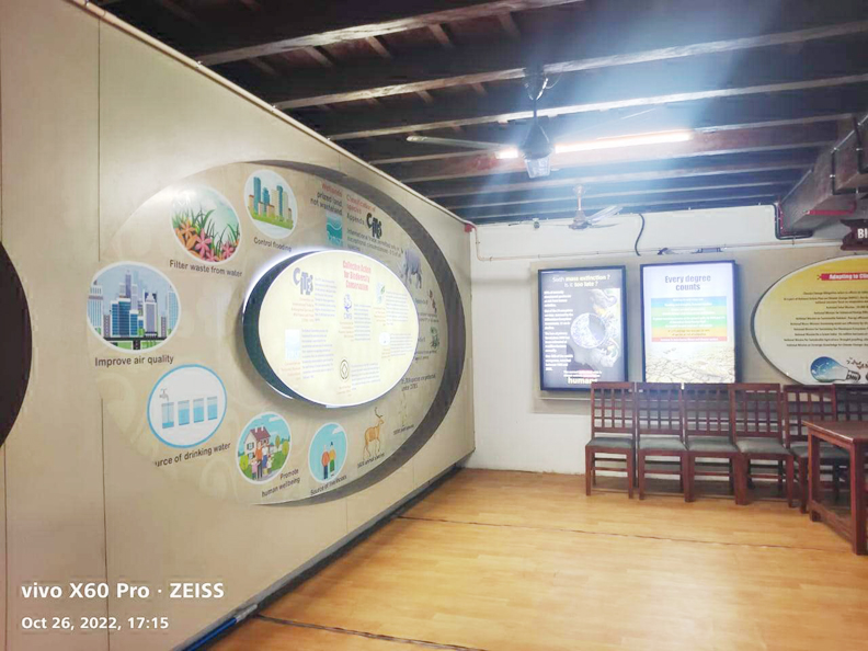 उन्होंने बताया कि पहली मंजिल में भारत और केरल की जैव विविधता को समर्पित है और इसमें प्रजातियों की विविधता के पैनोरमा के वीडियो के अलावा इंटरएक्टिव पैनल और बैकलिट पैनल हैं। ग्राउंड फ्लोर जैव विविधता, कृषि जैव विविधता आदि के संरक्षण और सतत उपयोग पर ध्यान केंद्रित करता है और इसमें इंटरएक्टिव पैनल और बैकलिट पैनल और वीडियो भी हैं। वैश्विक स्तर और राष्ट्रीय स्तर पर जैव विविधता और संरक्षण पहल के लिए प्रमुख खतरों और भारत के संरक्षित क्षेत्रों पर प्रकाश डाला गया है।