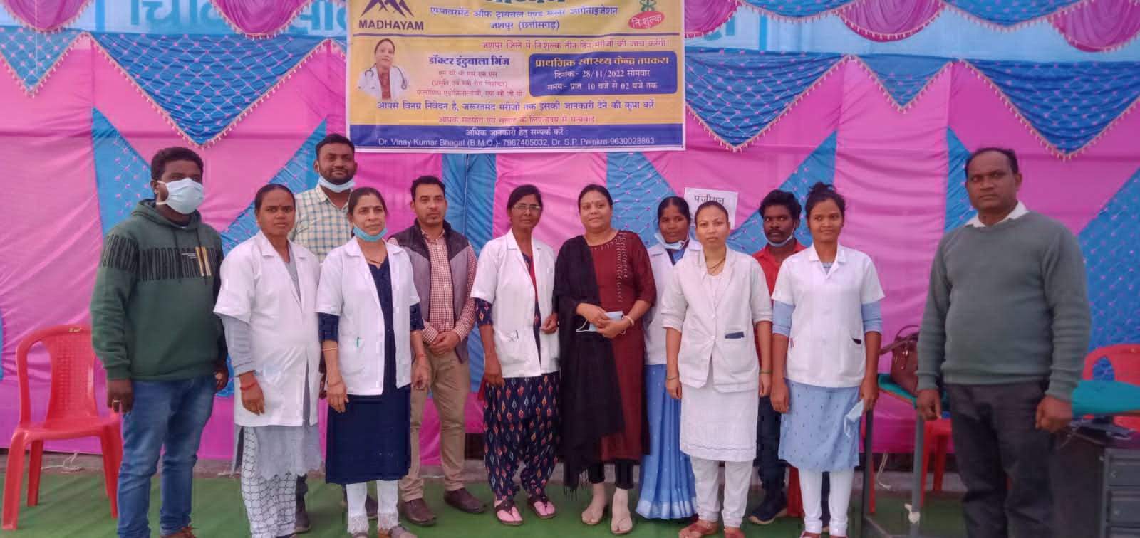 जशपुरनगर, 28 नवंबर। जिले के लोगों कों बेहतर स्वास्थ्य सुविधा देने के लिए लगातार मेडिकल कैम्प आयोजित किये जा रहे हैं। इसी कड़ी में कुनकुरी एवं तपकरा सामुदायिक स्वास्थ्य केंद्र में माध्यम संस्था के सहयोग से दो दिवसीय स्वास्थ्य शिविर लगाया गया। शिविर में एमएमआई रायपुर व बिलासपुर रेलवे के विशेषज्ञ डॉक्टरों ने मरीजों की जांच की।