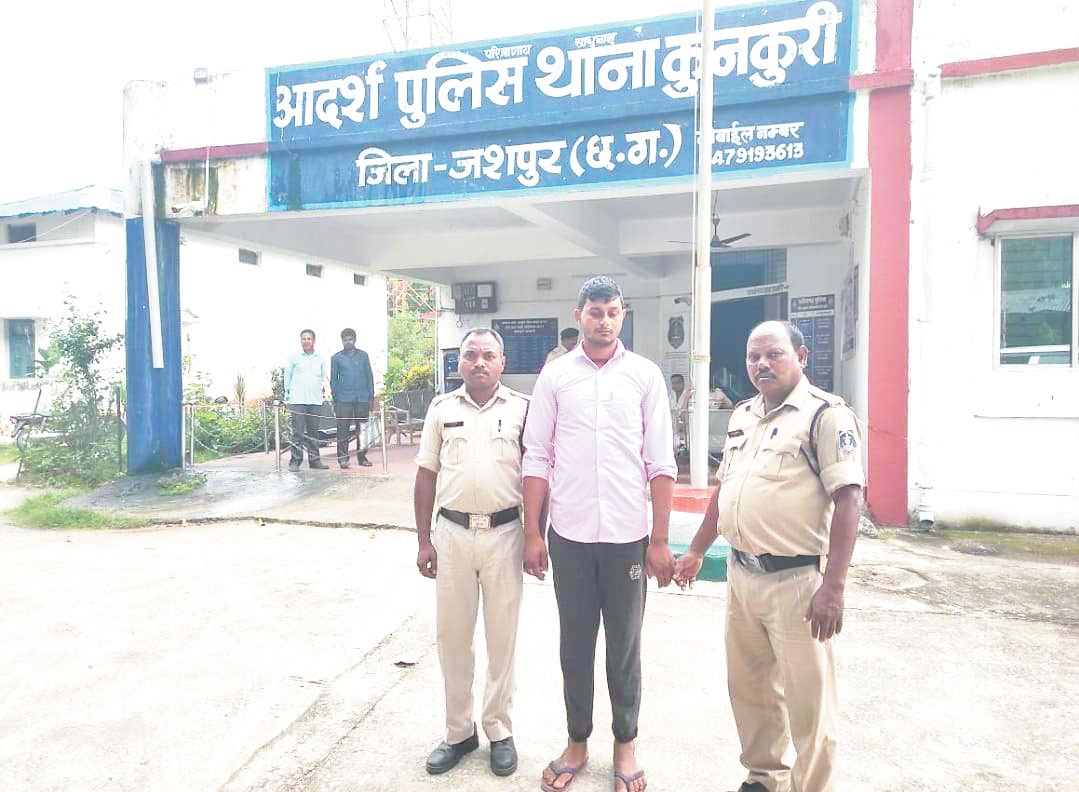 थाना कुनकुरी में धारा 4, 6, 10 छ.ग. कृषक पशु परि. अधिनियम के फरार आरोपी मो. लालखान उम्र 46 वर्ष निवासी गोविन्दपुर थाना जारी जिला गुमला (झारखंड) हाल मुकाम-साईंटांगरटोली चौकी लोदाम का जो पिछले वर्ष से पशु तस्करी के मामले में फरार चल रहा था वह 29 जुलाई को कुनकुरी न्यायालय में सरेंडर करने पर पुलिस द्वारा गिरफ्तारी कार्रवाई किया गया है।