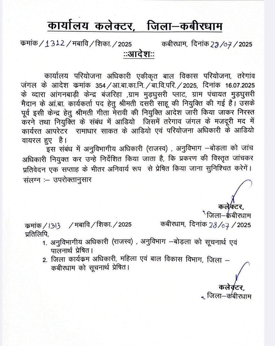 कलेक्टर कबीरधाम ने लिया संज्ञान, जांच के आदेश जारी