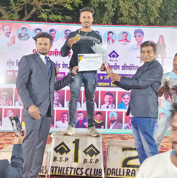 कोंडागांव, 31 जनवरी। दल्ली राजहरा में आयोजित 9वीं राज्यस्तरीय स्ट्रेंथलिफ्टिंग प्रतियोगिता में कोंडागांव के गौतम अलेंद्र 68 किलो सीनियर वर्ग समूह में 625 किलो वजन उठाकर गोल्ड मेडल व सर्वाधिक वजन उठाकर सीनियर स्ट्रॉन्ग मैन का खिताब भी अपने नाम किया।