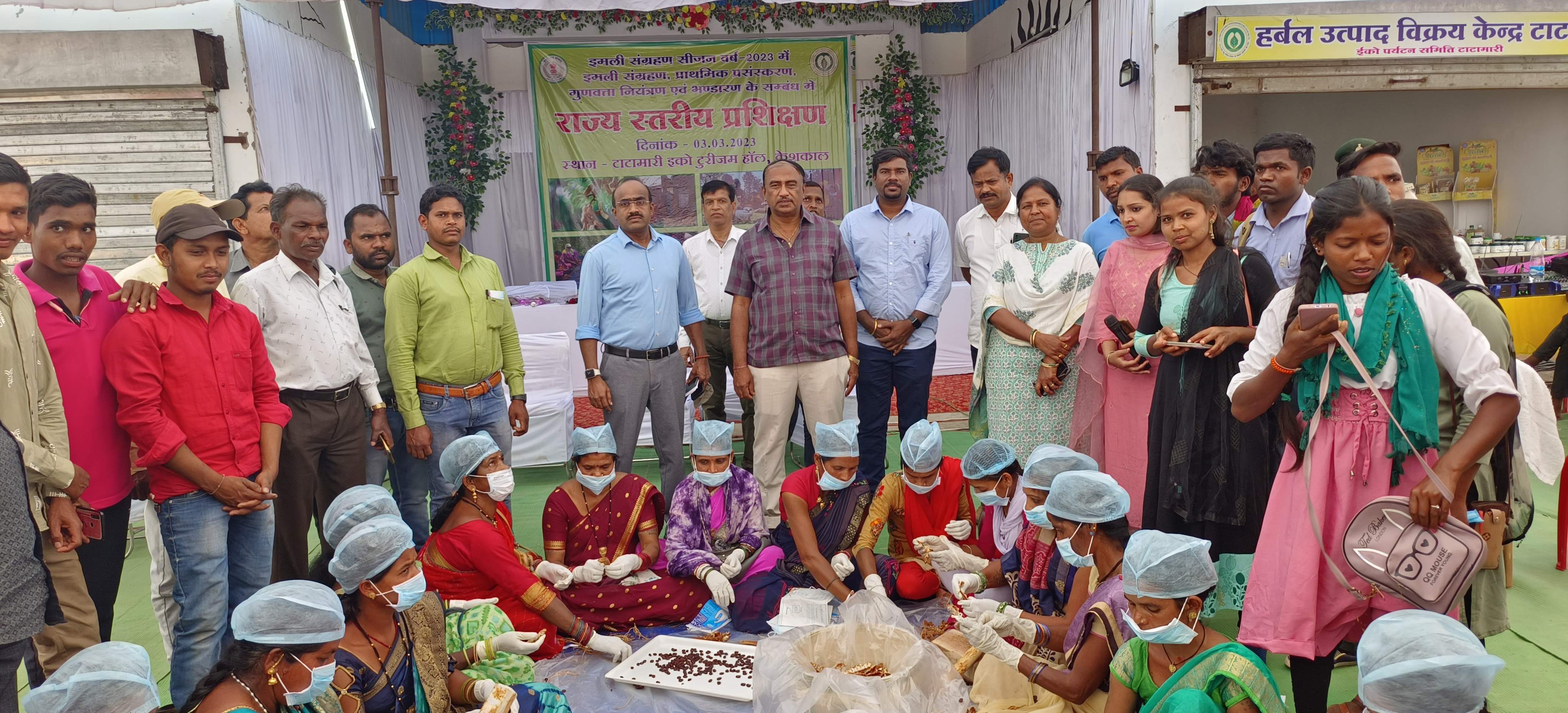 केशकाल वनमण्डल अंतर्गत पर्यटन केंद्र टाटामारी में शुक्रवार को वन विभाग द्वारा राज्यस्तरीय इमली संग्रहण हेतु प्रशिक्षण शिविर का आयोजन किया गया था। जिसमें कांकेर एवं जगदलपुर वन वृत्त एवं बालोद, धमतरी, गरियाबंद, धरमजयगढ़, रायगढ़ एवं जशपुर समेत 16 वनमण्डलों से 250 से अधिक लोग शामिल हुए। इस दौरान अपर प्रबंध संचालक बी आनंद बाबू व कांकेर सीसीएफ के राजू आगाशिमणि की मौजूदगी में जिला यूनियन के सदस्यों को इमली संग्रहण, प्राथमिक प्रसंस्करण, गुणवत्ता नियंत्रण व भंडारण की जानकारी दी गई।