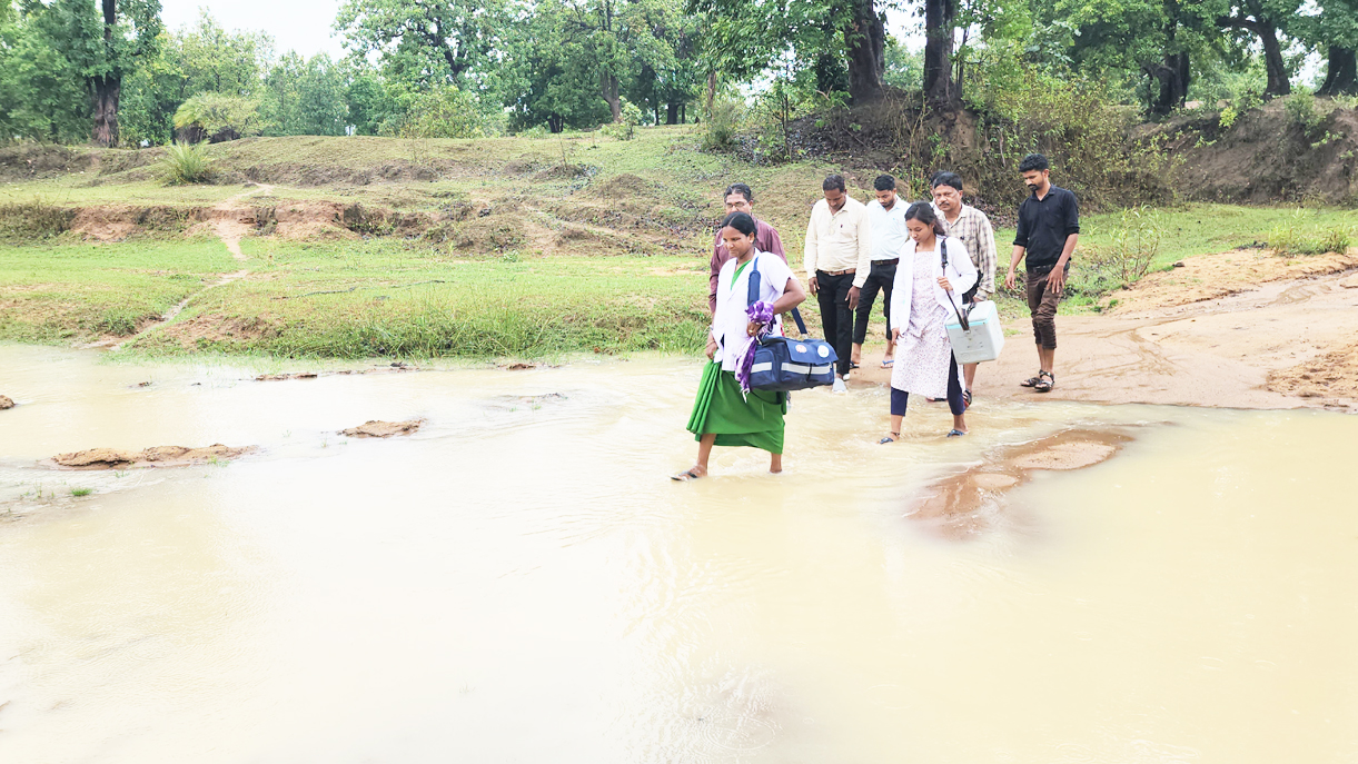 महिला स्वास्थ्य कर्मचारी तारा बघेल ने बताया कि 8 साल से लगातार ग्राम कोठोडी में सेवा दे रही हूं, बारिश के एक और गाड़ी खड़े कर पैदल ही नाला को पार करते हुए गांव पहुंचते हैं और स्वास्थ्य सुविधा का लाभ ग्रामीणों को देते है, क्योंकि बारिश के बाद इस गांव में आना संभव नहीं है।