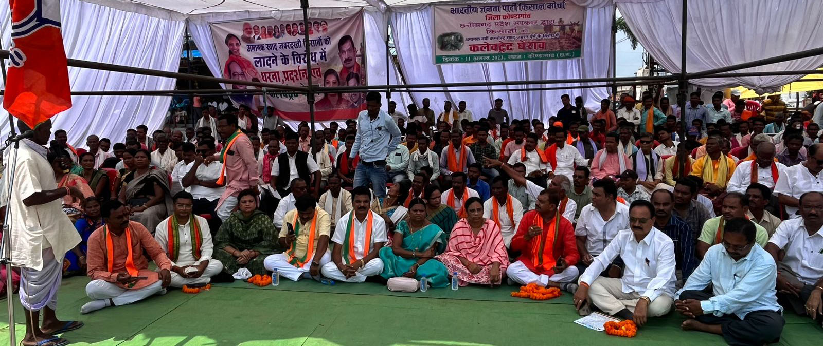 किसानों को संबोधित करते हुए राष्ट्रीय उपाध्यक्ष लता उसेंडी ने कहा कि प्रदेश में जब से कांग्रेस सरकार आई है, किसानों को ठगा जा रहा है। सरकार द्वारा जहां एक ओर किसानों का धान का रकबा कम कर दिया गया तो दूसरी ओर समितियों के माध्यम से घटिया खाद खरीदने के लिए बाध्य किया जा रहा है। सरकार शहरों में बड़े-बड़े होर्डिंग लगाकर गोबर खरीदने की झूठी वाहवाही लूट रही है जबकि गौठान में स्थिति बिल्कुल विपरीत है। गौठानों में न तो मवेशी हैं और न ही गोबर खरीदी हो रही है। गोबर खरीदी का झूठा आंकड़ा दिखाकर सरकार फजऱ्ीवाड़ा कर रही है, यदि इसकी निष्पक्ष जांच हो तो यह छत्तीसगढ़ का सबसे बड़ा घोटाला साबित होगा। वहीं वर्तमान विधायक मोहन मारकाम पर तंज कसते हुए कहा कि इनका जनता के मुद्दे से कोई सरोकार नहीं है जो भ्रष्टाचार मे इनके मौन समर्थन को दर्शाता है।