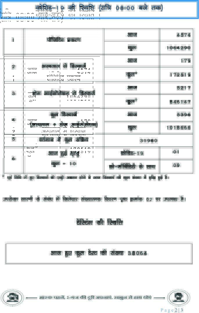 प्रदेश में आज रात तक 4574 पॉजिटिव, सर्वाधिक रायपुर जिले में, कुल मौतें 10