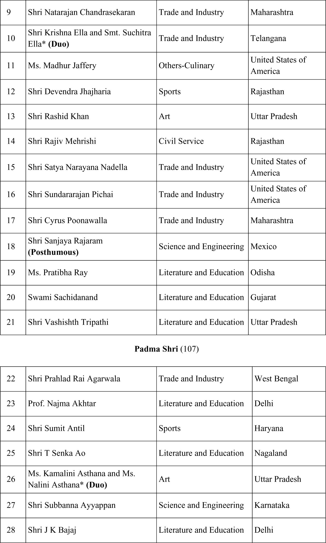 रायपुर, 25 जनवरी।केंद्र सरकार ने इस साल दिए जाने वाले पदम पुरस्कारों की घोषणा कर दी है।इस बार छत्तीसगढ़ के हिस्से एक भी पुरस्कार नहीं आया है। विजेताओं के नाम इस प्रकार हैं...