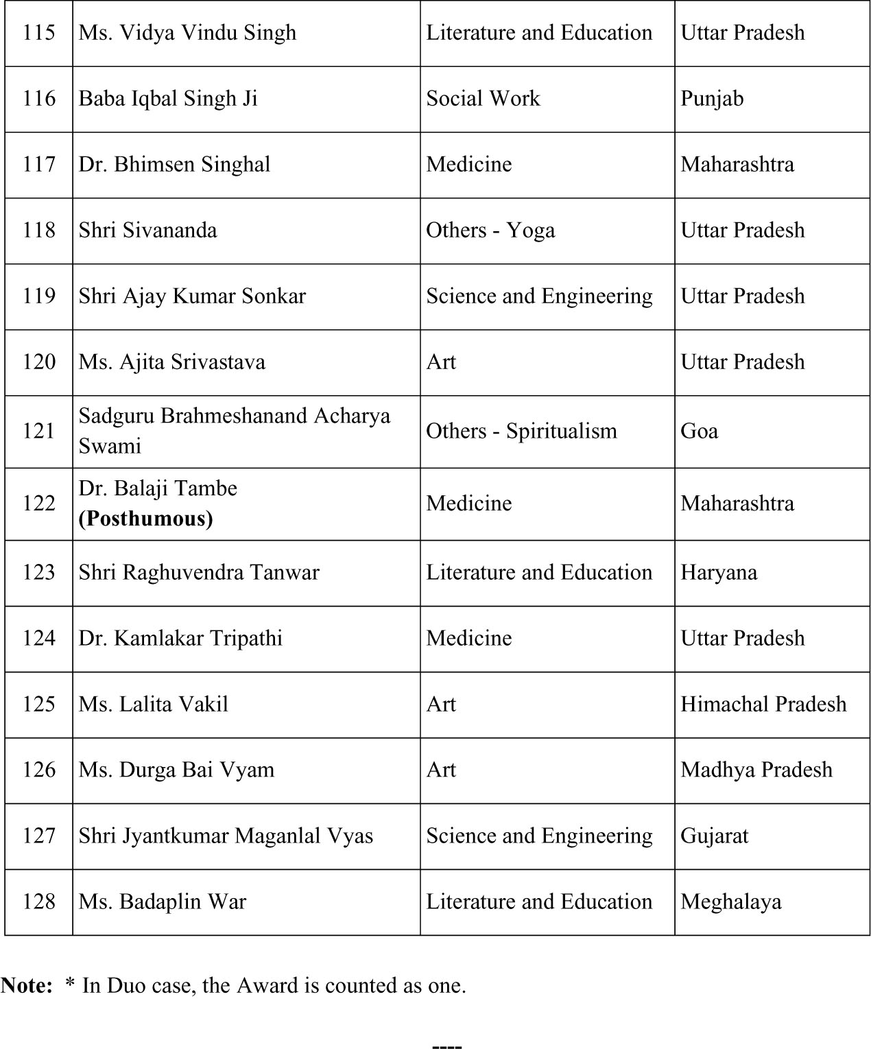 पद्म पुरस्कारों की घोषणा, छत्तीसगढ़ से एक को भी नहीं