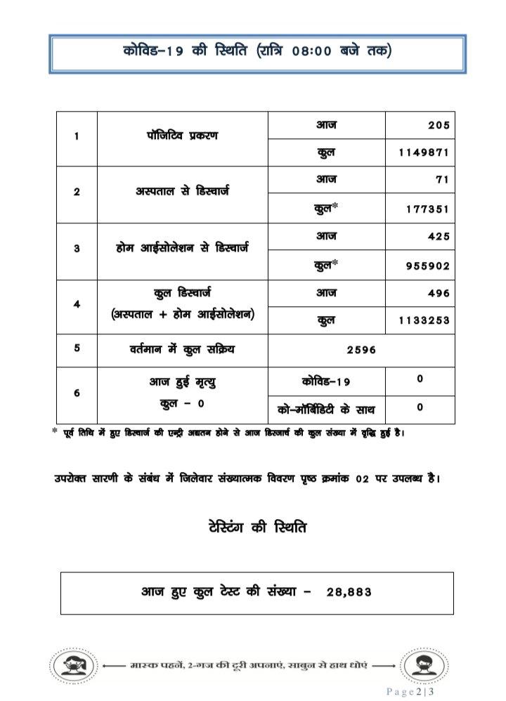 प्रदेश में आज रात तक 205 पॉजिटिव, सर्वाधिक रायपुर जिले में, 4 जिलों में शून्य