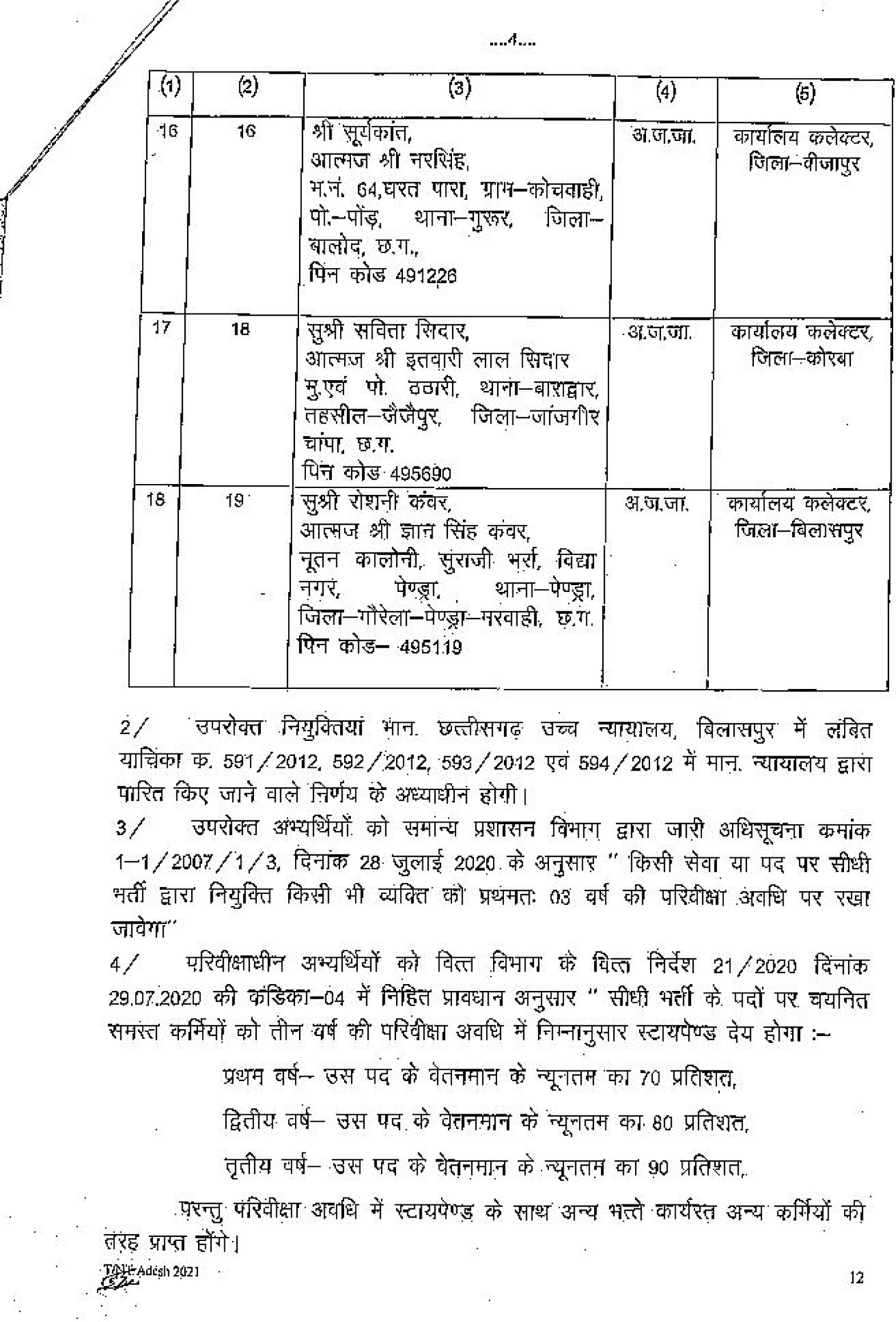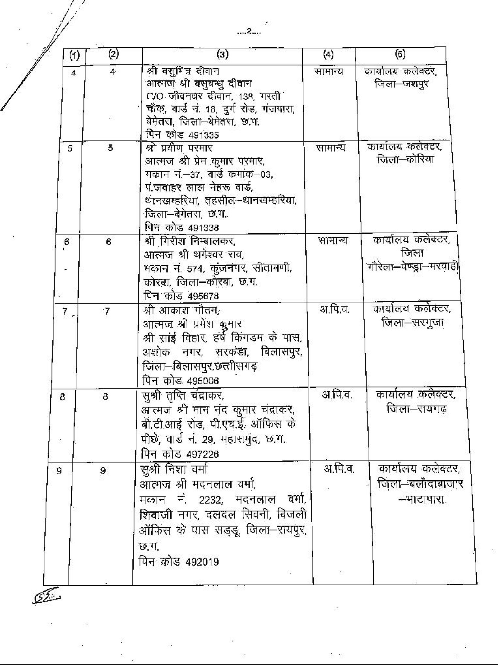 बिलासपुर, 23 फरवरी। राज्य सरकार ने पीएससी से चयनित 18 नायब तहसीलदारों की जिलों में पोस्टिंग कर दी है।