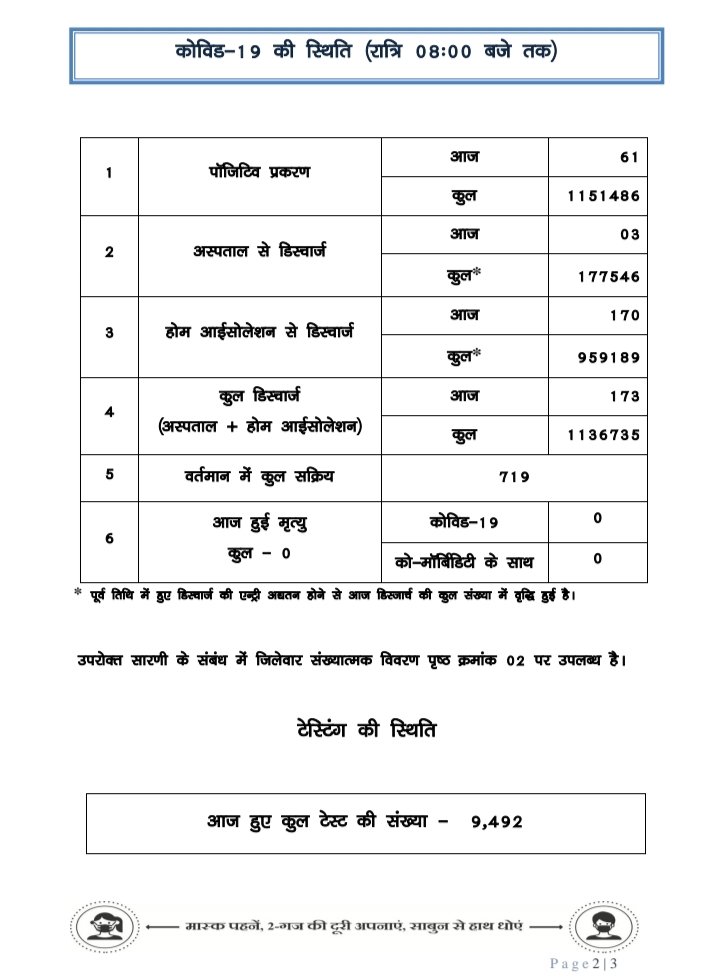 प्रदेश में आज रात तक 61 पॉजिटिव, सर्वाधिक रायपुर जिले में, 12 जिलों में शून्य