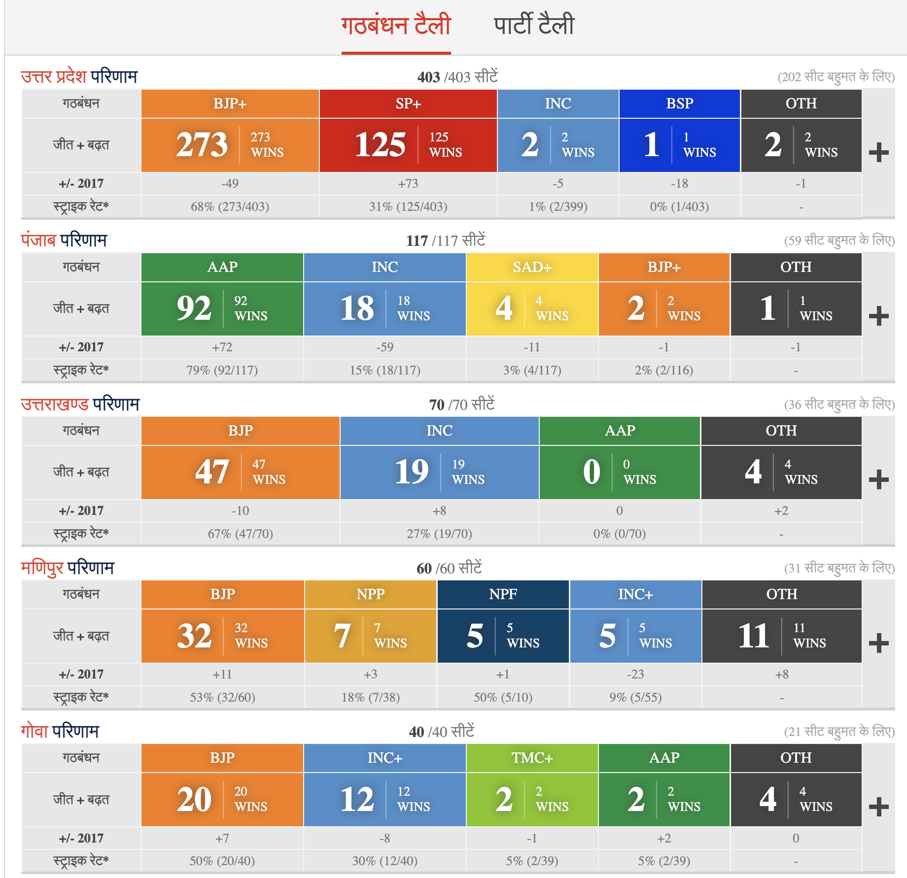 पूरे मतगणना के बाद के नतीजे, न्यूज़ 18