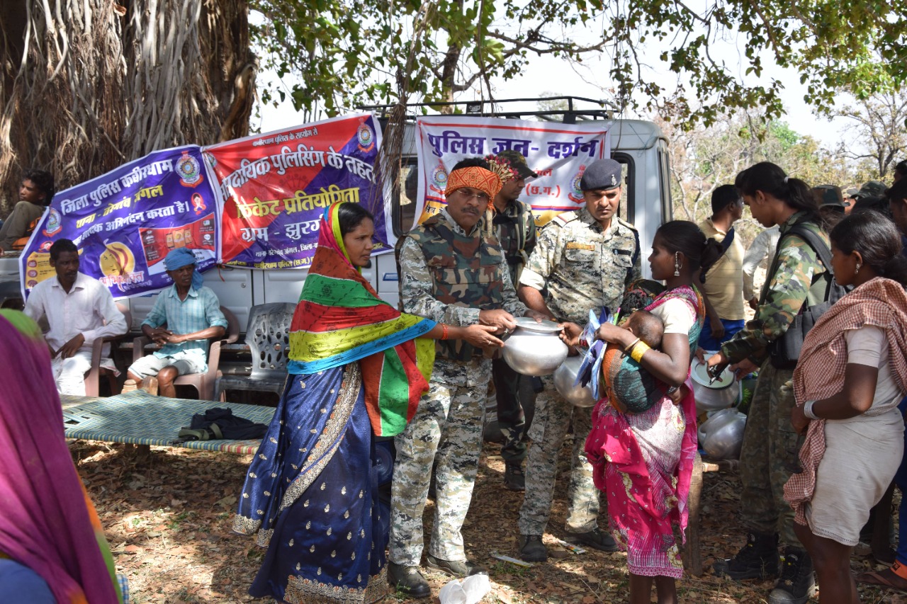 पुलिस अधीक्षक डॉ. सिंह ने ग्रामीणों को नक्सली विचारधाराओं से दूर रहकर नक्सल गतिविधियों के संबंध में पुलिस की हरसंभव मदद करने आग्रह किया। उन्होंने ग्राम की महिलाओं को दैनिक उपयोग के लिए बर्तन वितरण के साथ ही क्षेत्र के बच्चों को स्कूली किताब, कापी, पेन्सिल एवं गणवेश वितरण किया। उन्होंने ग्रामीणों को बच्चों की पढ़ाई-लिखाई पर विशेष ध्यान दिए जाने का आग्रह किया। होली त्यौहार को ग्राम में हर्ष उल्लास से मनाये जाने के लिए ग्राम के युवकों एवं बुजुर्ग को फागुन गीत के लिए नगाड़ा भेंट कर त्यौहार की अग्रिम शुभकामनाएं दी।