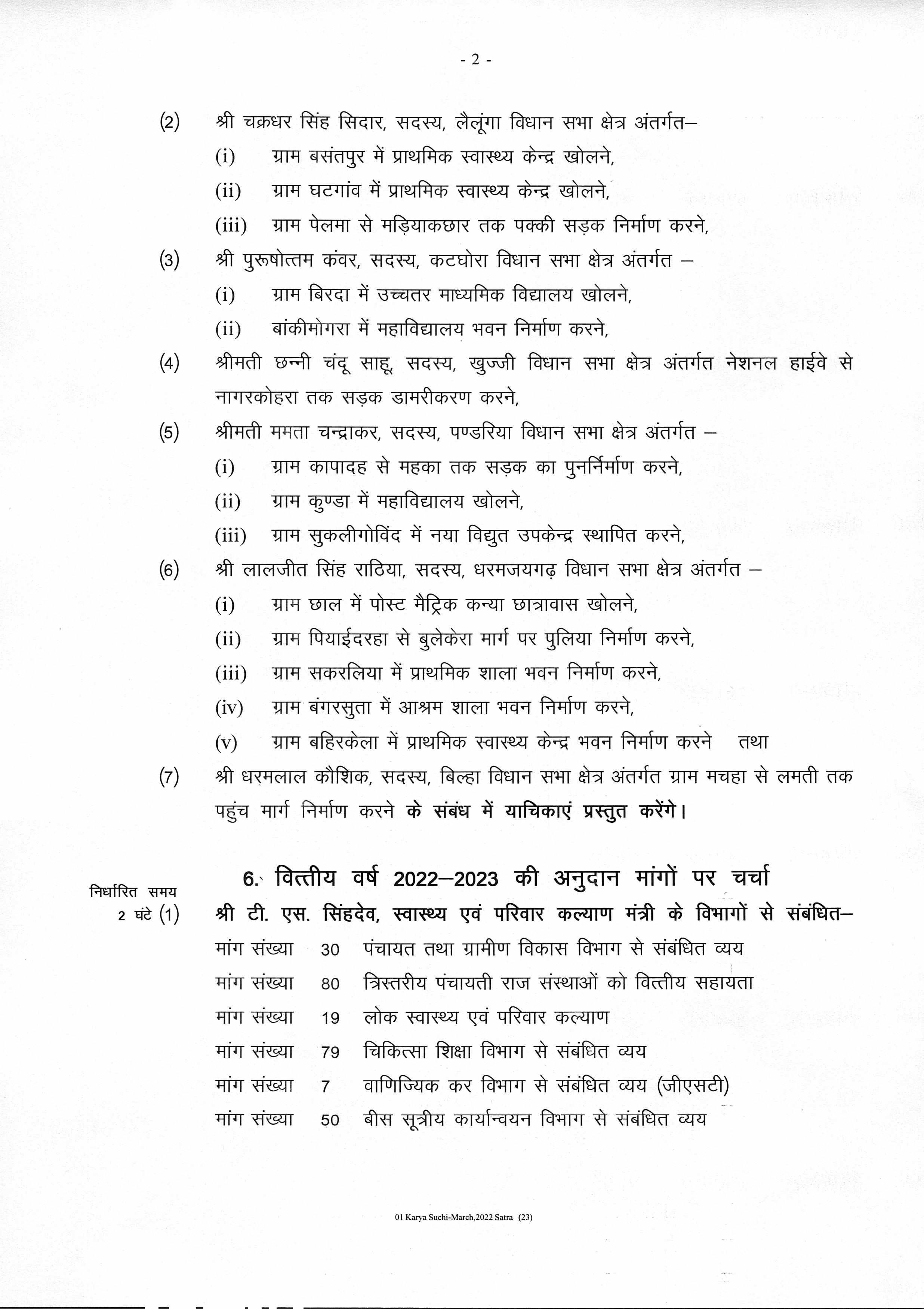 कार्यसूची के मुताबिक सीएम बघेल, नये बजट के खर्च की अनुमति वाला विनियोग विधेयक कल ही पेश करने जा रहे हैं। इसे परसों मंगलवार को पारि कर दिया जाएगा। उसके बाद माना जाता है कि सरकारी कामकाज खत्म हो गया है। यही कारण है कि विधायक कह रहे हैं कि सत्र 25 के बजाय 23 को खत्म हो सकता है। देखें कार्यसूची....
