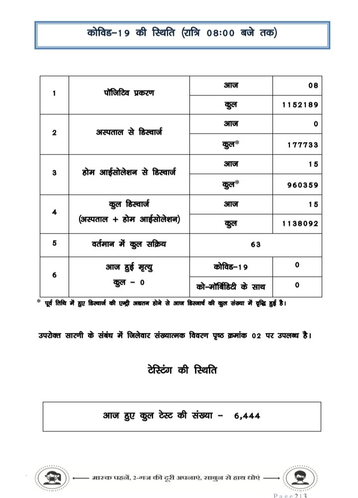 प्रदेश में आज रात तक 8 पॉजिटिव, 20 जिलों में शून्य