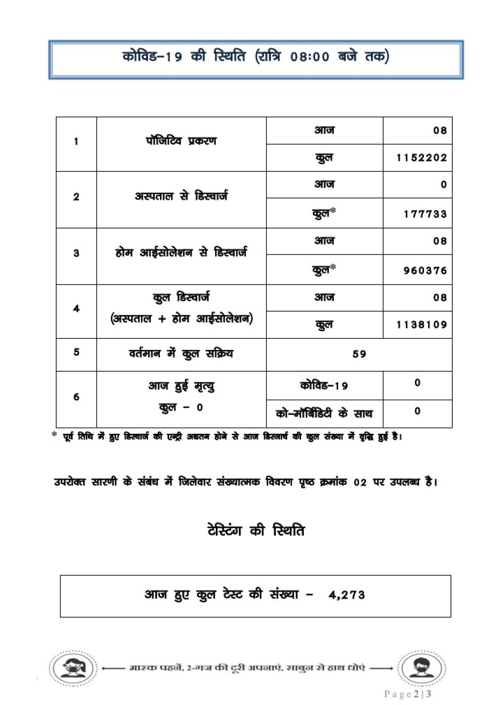 प्रदेश में आज रात तक 8 पॉजिटिव, सर्वाधिक बिलासपुर जिले में, 24 जिलों में शून्य