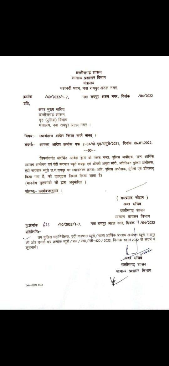 एसीबी ईओडब्ल्यू में तबादले, सोरी, और चंद्रा के तबादले रूके