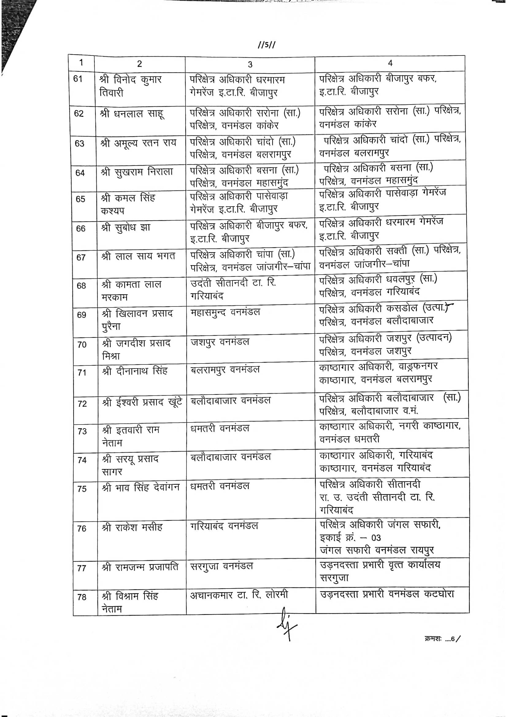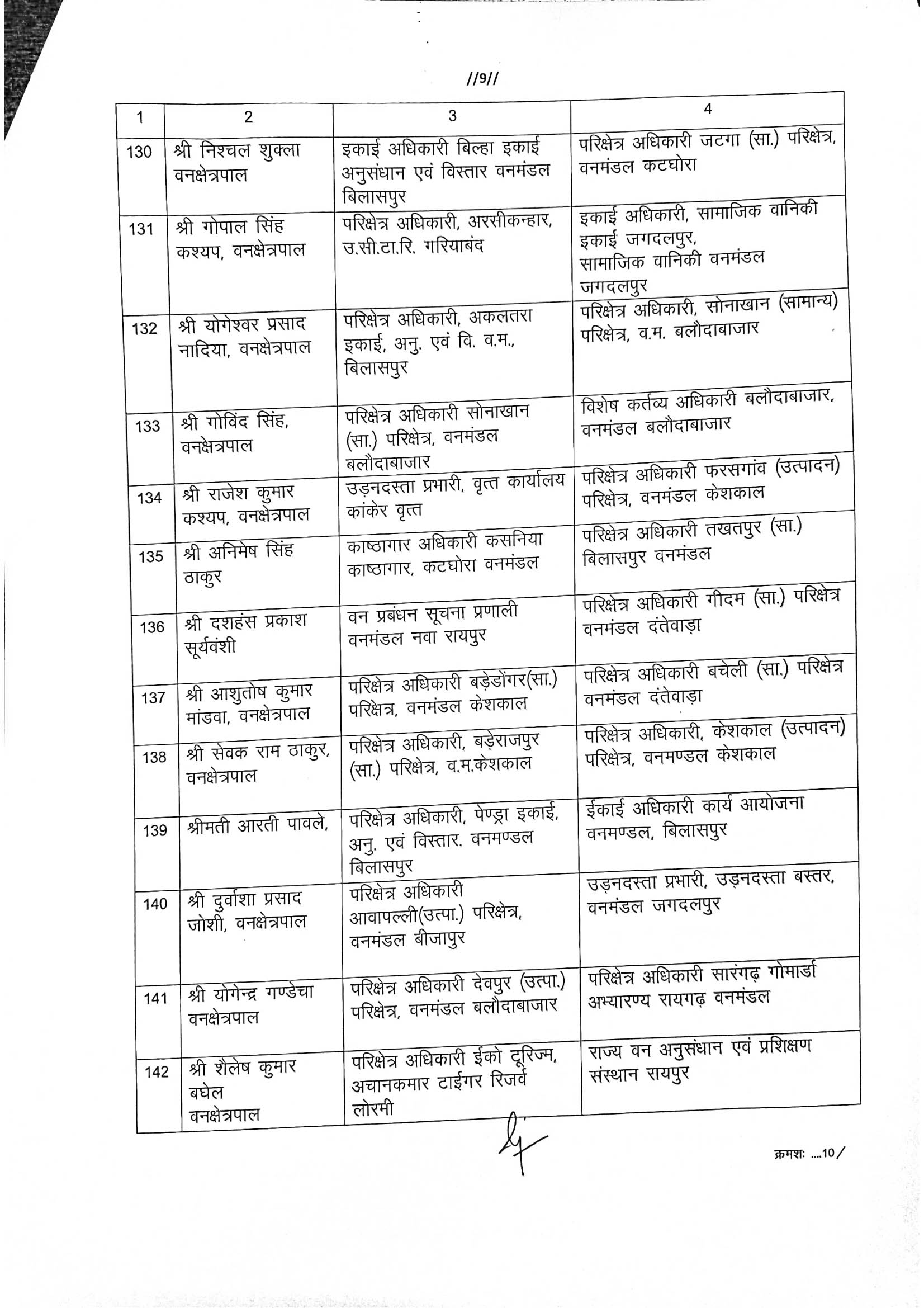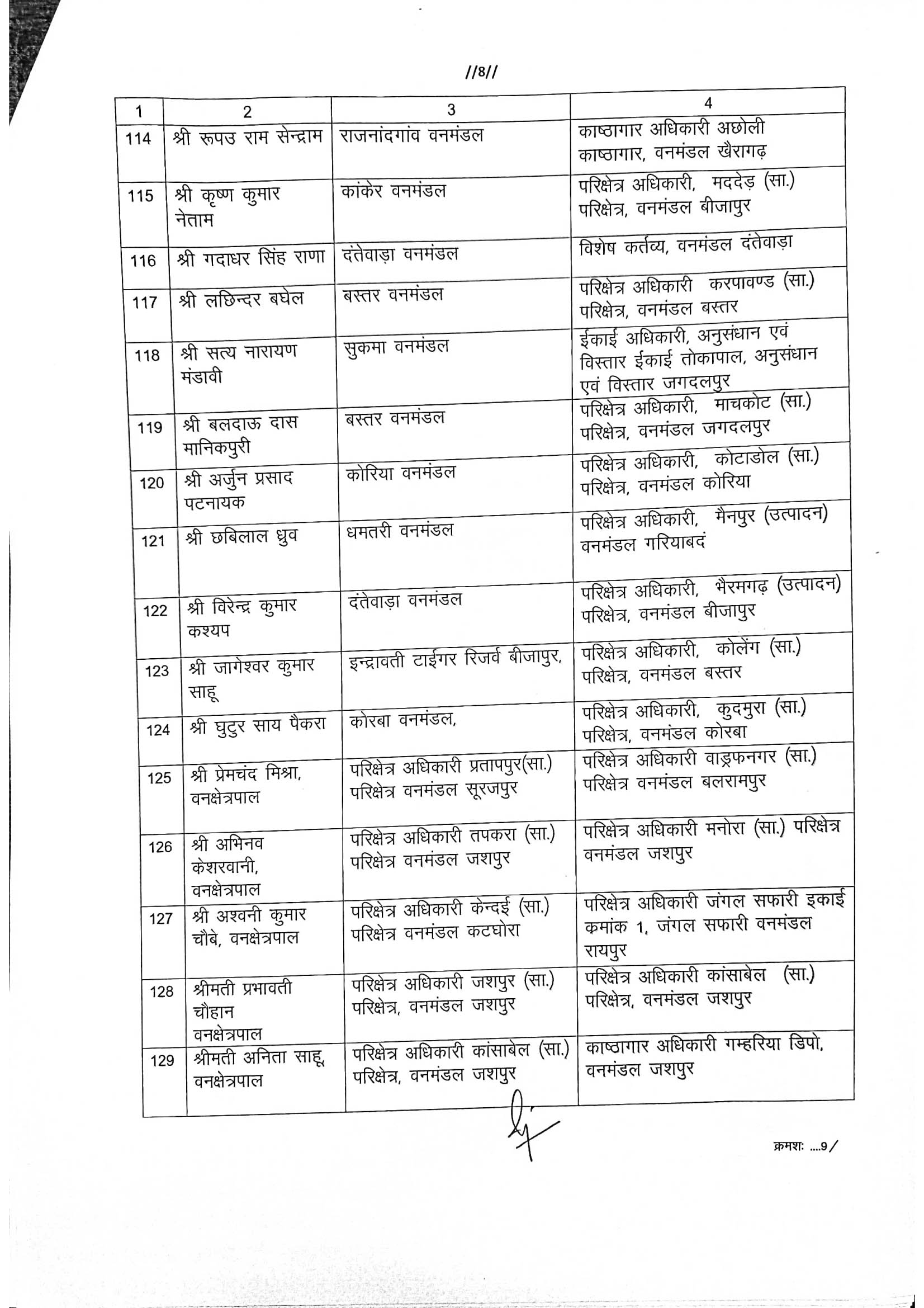 रायपुर, 21 अप्रैल। वन विभाग में डेढ़ सौ से अधिक रेंजर, और अन्य अफसरों के तबादले किए गए हैं। इस आशय के आदेश जारी कर दिया गया है ।
