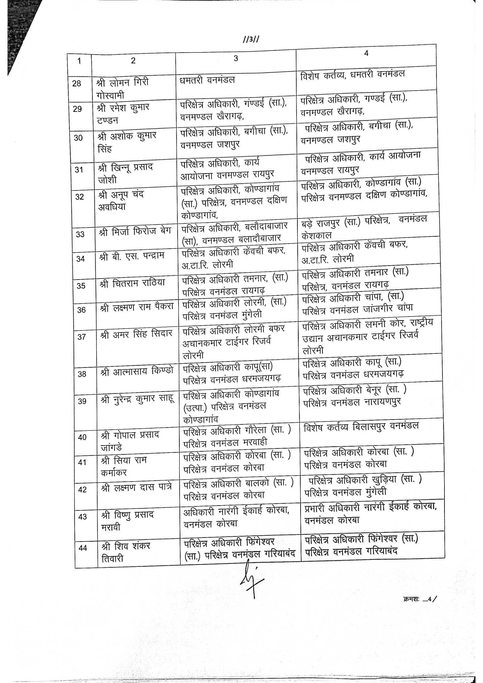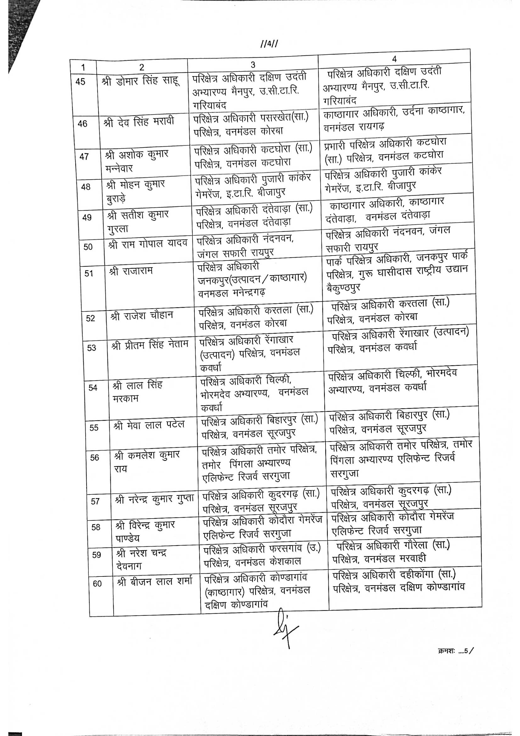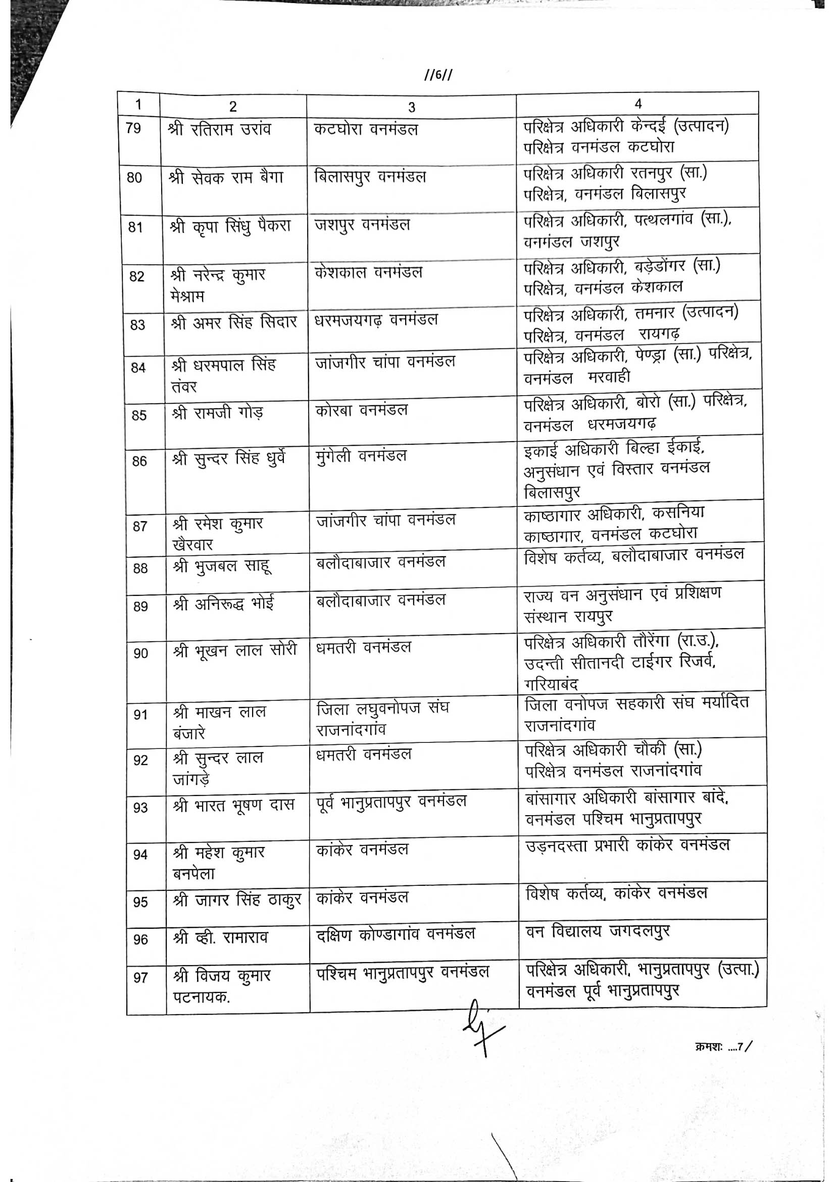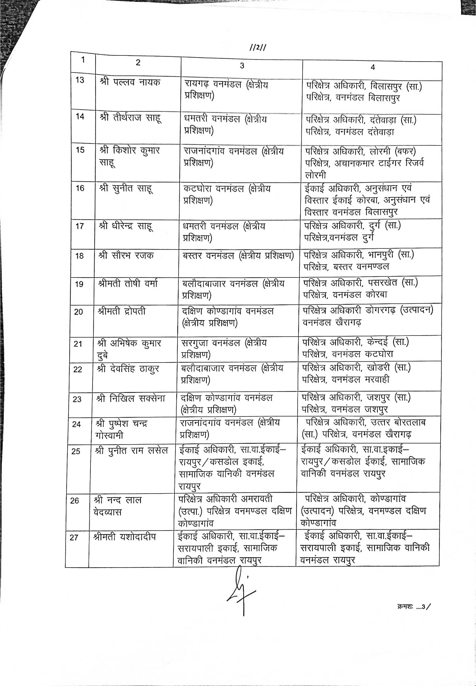रायपुर, 21 अप्रैल। वन विभाग में डेढ़ सौ से अधिक रेंजर, और अन्य अफसरों के तबादले किए गए हैं। इस आशय के आदेश जारी कर दिया गया है ।