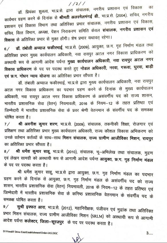 दो कलेक्टर बदले, पांच नए जिलों में ओएसडी की पदस्थापना