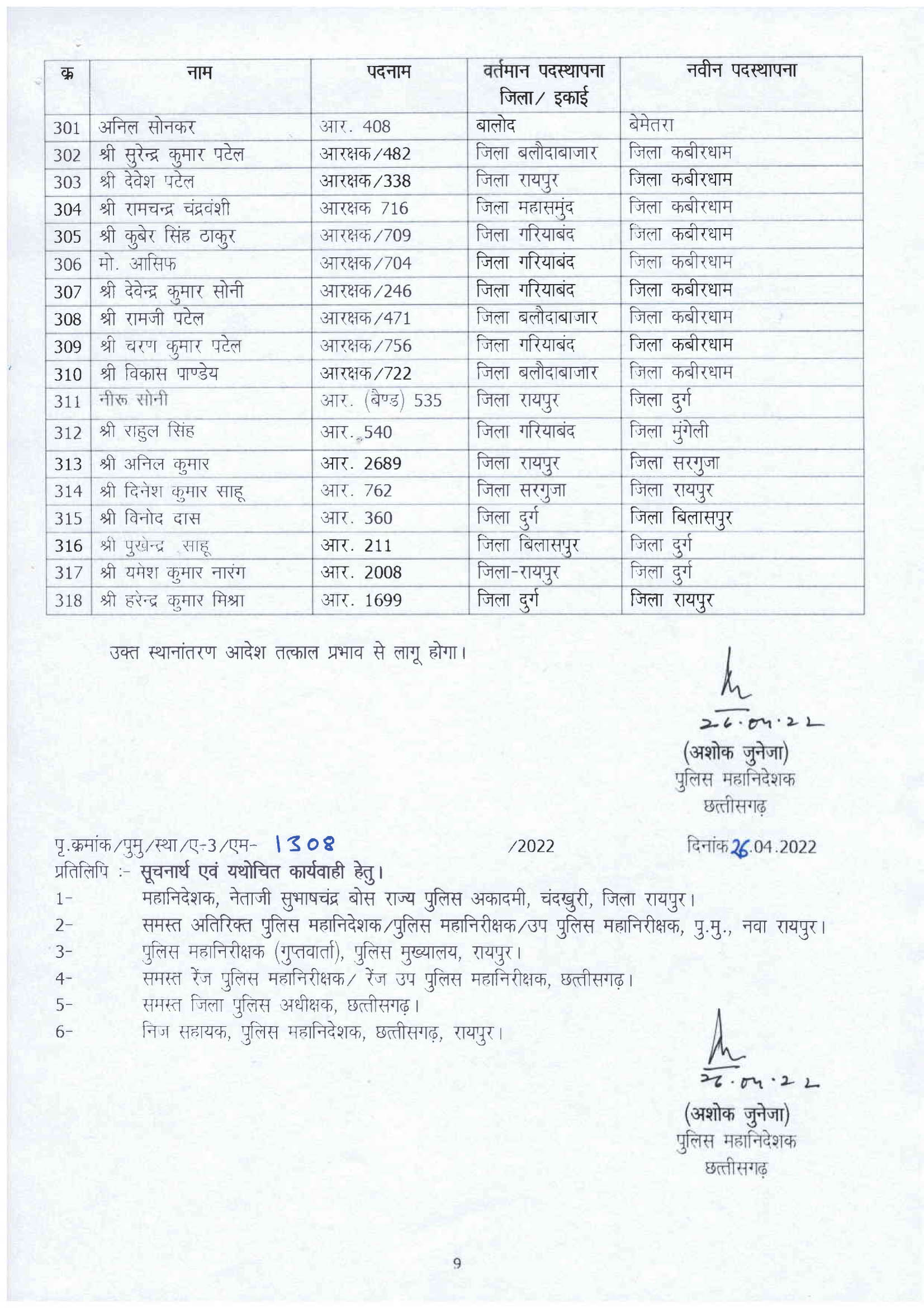 पुलिस मुख्यालय ने आज 253 इंस्पेक्टर समेत तीन सौ से अधिक कर्मियों के तबादले किए हैं।